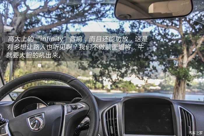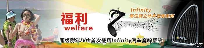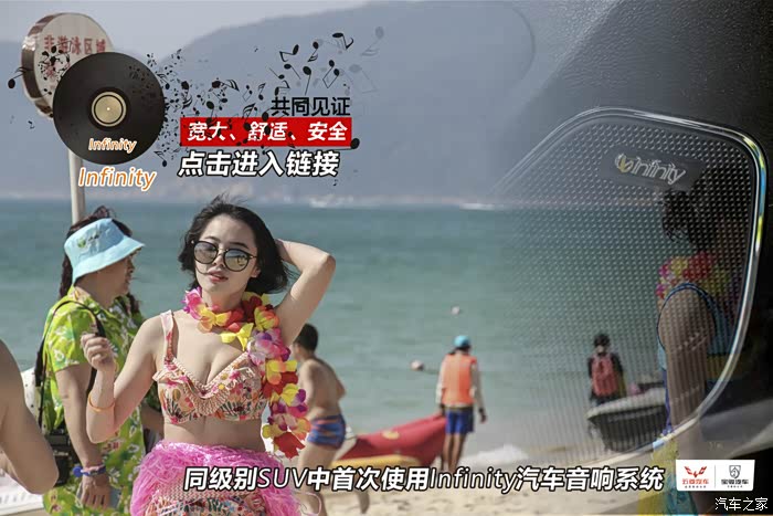 当你驾驶着底盘高,视野宽的车子行驶于高速公路、海边小道时,聆听着Infinity高性能立体声音响,所带来的震撼效果,是自己在同级别SUV车型中没有感受过的。这是一次自驾游,更是一次带着移动音乐厅的享受之旅,名副其实#带着音乐去旅行#。