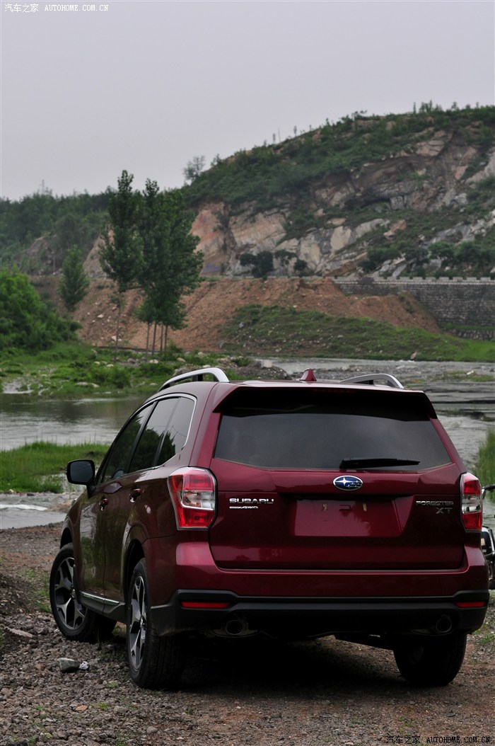 发照片前,不得不说几句,其实开始了解森林人,是因为老丈人有一辆老森2.5NA,当时才知道了左右对称,全时四驱是斯巴鲁的强项。几次出游开了开,感觉比自己的小福爽很多,尤其是220MM的高通过性,爬山涉水不用担心,不用像每次小福出去玩总免不了几次磕底,担惊受怕。由于后来父母也考下了驾照,购置第二辆车的日程也逐渐提上日程,心里那个开心呀!当时就定位非SUV不可,先后也看了几款车,由于当时翼虎快要上市,其实当时对翼虎还是比较期待,外观和配置都有亮点,等了大概半年的时间,终于上市,到店看了看感觉后排有点小,经过简单试驾,在家人的督促下半推半就的把车就给定了。其实翼虎当时如果产能跟的上,我可能今天已经开始后悔了。因为一开始也看过13森,只是老丈人说维修和保养方面费用比较高就打了退堂鼓,而且当时对新款的CVT没有太多好感,也没细看就定了翼虎。但谁知道不争气的长安,愣让我等了3个月一点消息没有,后来表哥放毒,就一起开始研究新森,经过几次试乘试驾,感觉舒适,空间,操控,四驱都很好,又是全进口身份,并且在碰撞测试中的优异表现更加坚定了我的信念。当天下定2.5尊贵,后来去SSSS偶尔碰见了一辆XT试驾车,店员说你试试这个吧,这个性能更好,因为一开始预算的问题,就是想随便开开感觉一下就好,结果一试,当时就中毒了。。。。回家之后辗转反侧睡不着,就是纠结又纠结,关键是比尊贵贵了6W左右,的确超预算太多,但又实在难以抗拒XT那加速时血脉喷张的感觉,最后还是没有抵得过诱惑,大家都懂得