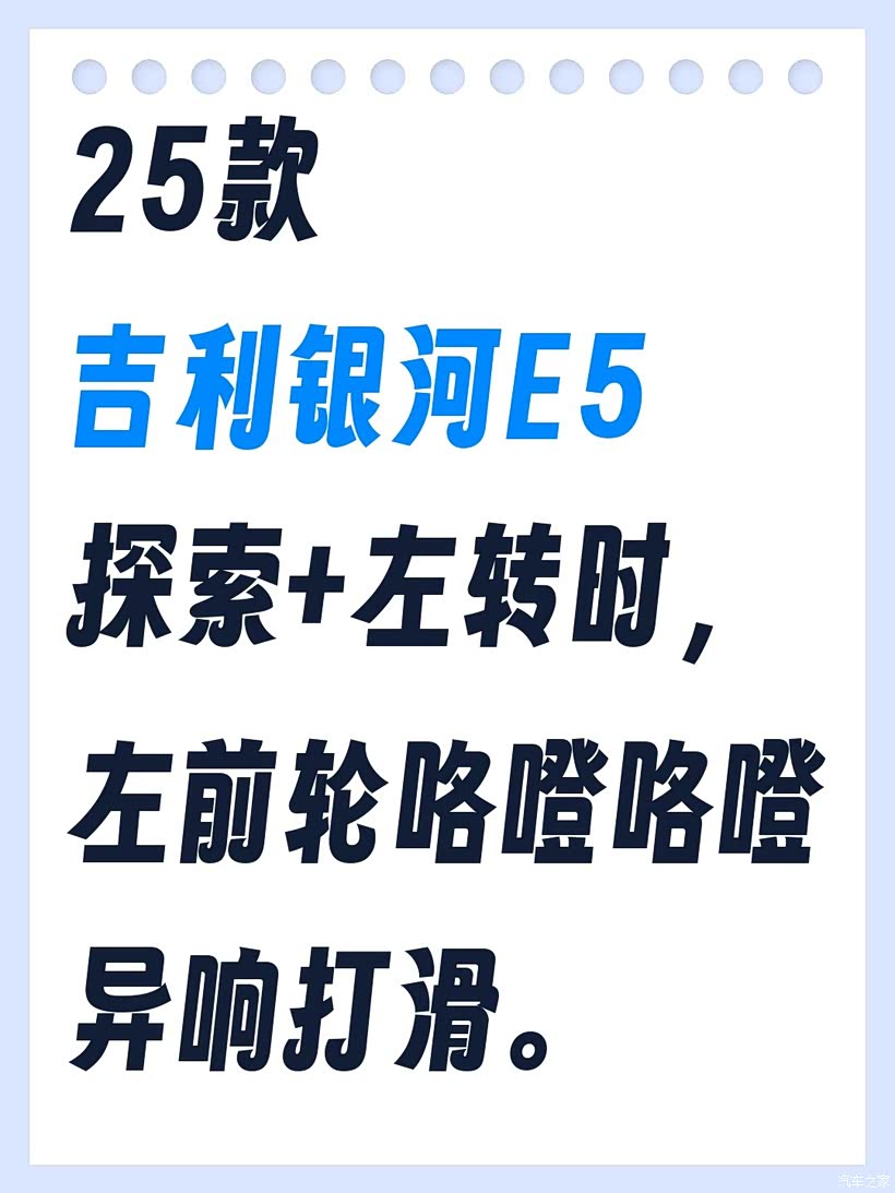 25款吉利银河E5探索+左转时,左前轮咯噔咯噔异响打滑。