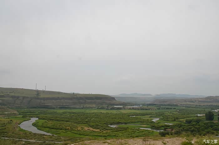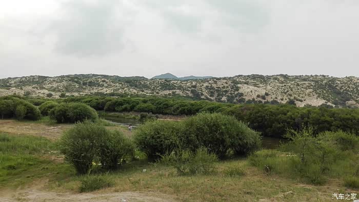 一路且行且停,道路两边一边是翠绿的山峦,一边是沙地丘陵,仅仅一河之隔,地貌居然差别这么大,令人惊叹不已!