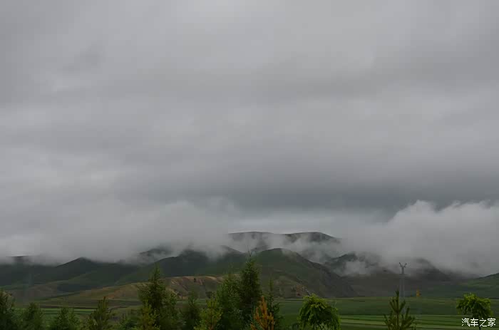 在看到一座加油站时,要向右转入另一条道路。转过弯后,发现我们驶入了达达线,两边的草原是贡格尔草原,视线顿时开阔了,雨也停了,但云层依然很厚。我们抑制不住激动的心情,不时车停路边下来各种拍照。实景远比照片漂亮多了。置身达达线,心无杂念,身心得到了无比放松,那种感觉只有身临其境才能体会到。
