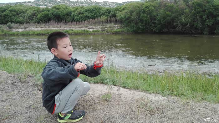 看到路边一处榆树林,便拐进去探路,没想到居然能到西拉沐沦河边,河水清澈见底,只是水太凉了,没法玩水。在沙地上铺开地席,吃点儿东西,也让孩子们在草地上撒撒欢儿。