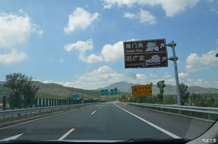 全程高速。二广高速车不多,过晋城时,经过了隧道群,绵延十几公里,最长的隧道七、八分钟都开不出来。翻过了雁门关。