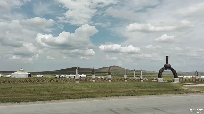 早饭后,设定好导航,向二连浩特市出发。过收费站时,询问了下路况,收费员告知S101有一段在修路。离开收费站约十几公里,到了修路处,尘土飞扬,须驶离道路,驶入工程车辆道路,那个颠簸呀,区区十几公里走了快1小时。除了修路那段,S101路况还是不错的,但是区间测速太多,而且没多远就会出现减速带,经常要急刹。S309路况不太好。下午1点多才到二连浩特市,刚进市区,又是修路,导航的路线封闭,车机找不到路,手机导航上,绕了半天,才到国门。下车一问工作人员,免税店进不了,须持护照办理过境一日游才行。有点儿小失望,只好买票去看国门吧。