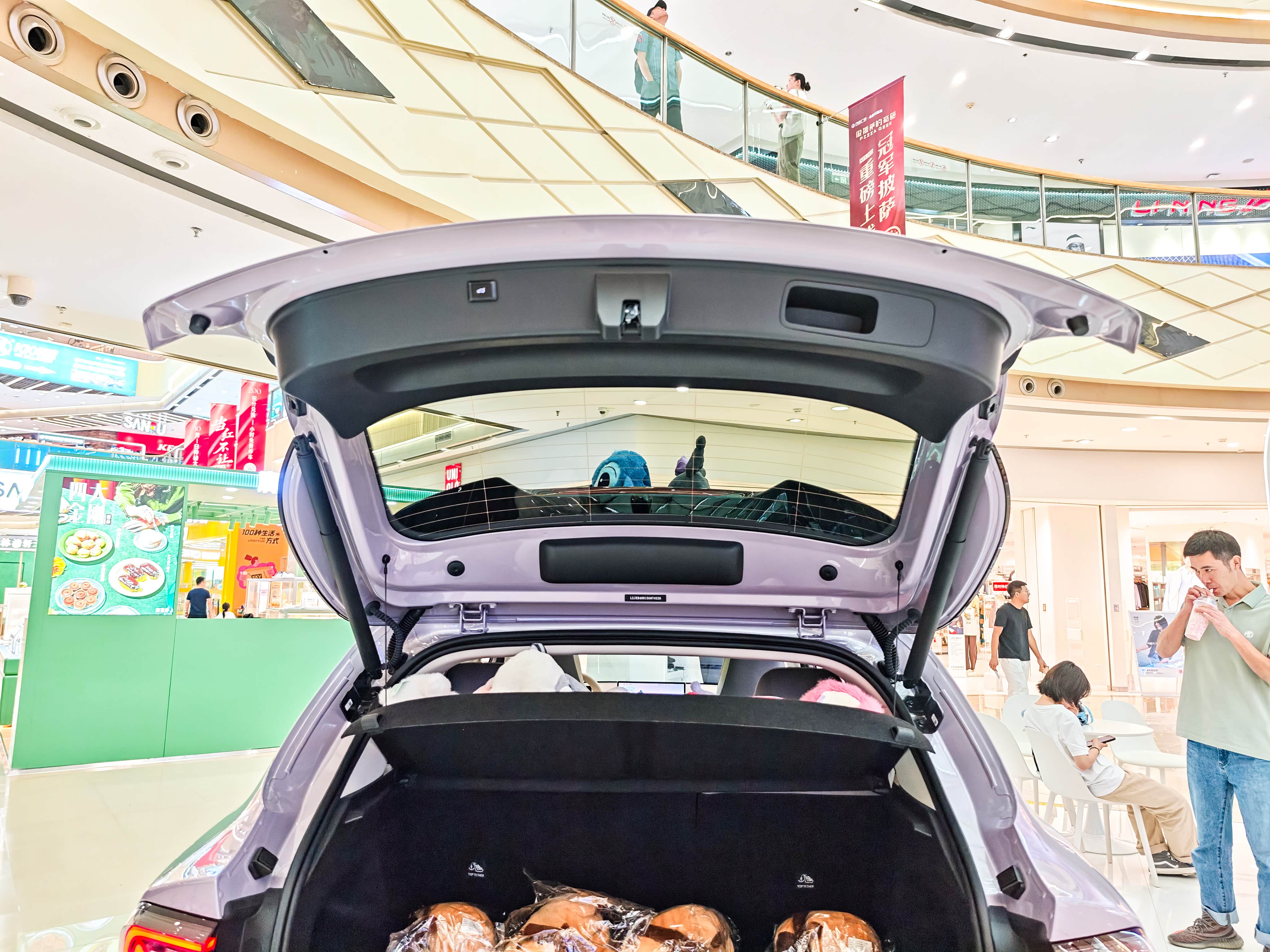 后备箱常规容积471L,另加98L下沉式储物空间,相比比亚迪海豚可多容纳1个28寸行李箱。后排座椅放倒后,可同时装载婴儿车与露营装备,空间实用性满足家庭用户需求。