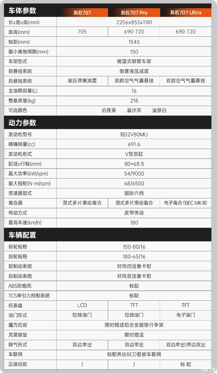 信息不断,新车拉满!9月19日,摩博会现场热闹非凡!N8馆奔达重磅消息来了!旗下灰石系列全新力作灰石707正式首发上市,官方指导价25900元起!此次上市新车共计公布了三个版本,分别为灰石707标准版,指导价25900元;灰石707Pro,指导价28800元;灰石707Ultra版,指导价,30800元。其中Pro以上版本更是加入空气悬架,配置表现十分丰富。