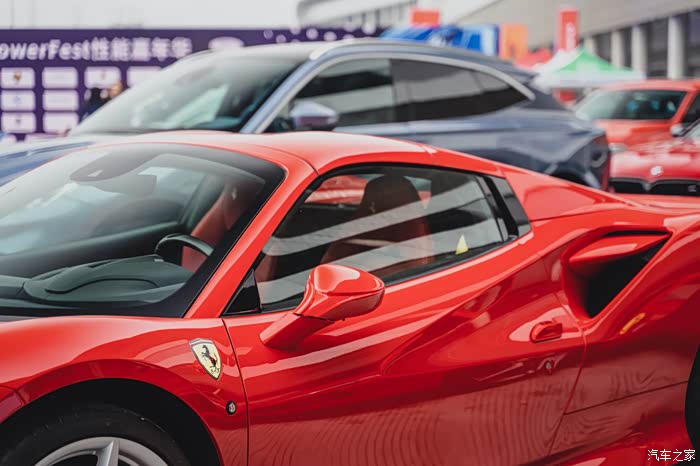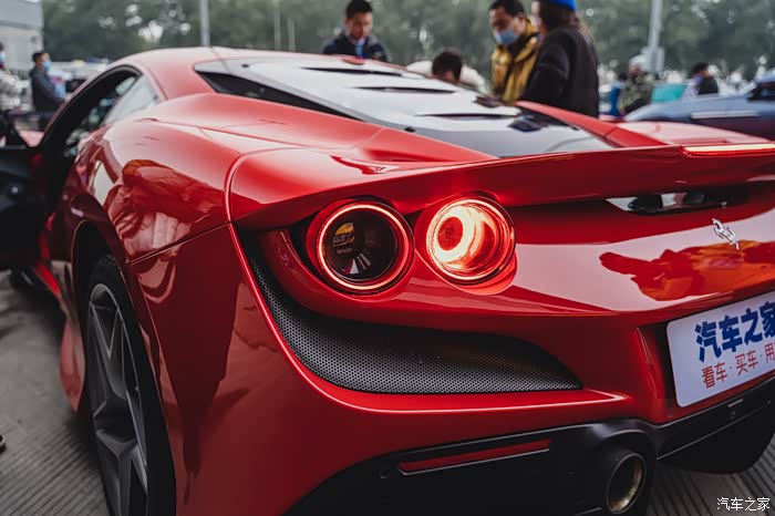 签到台旁停放的法拉利F8 Tributo很是抢眼,外观融入了全新的设计语言,整体造型更加激进、动感。