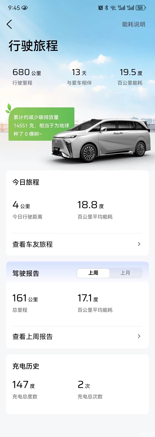 合创V09 长续航762版本提车13天 ,这样的能耗感觉很好
