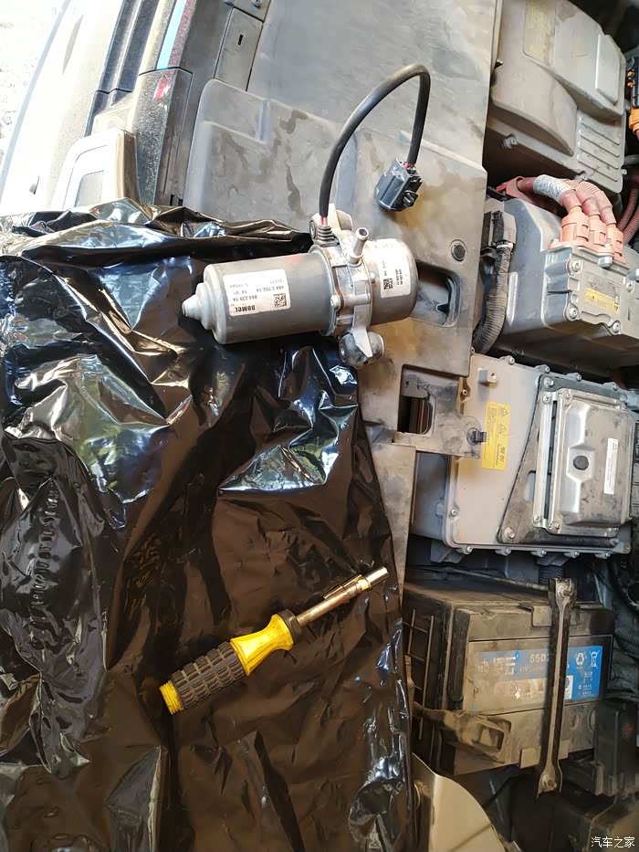 车子前段时间耗电比较大,我寻思是哪里出了问题,直到有一次充电,才发现原来是刹车泵出现故障了,难怪从汽车启动起就刹车泵一直运转不停,耗电肯定大大的。国金车每次充电的时候,都会启动一下刹车真空泵,一般就是30多秒以内停止,那天充插上充电器开始就一直没停,打开发动机舱盖,发现刹车泵高温气味很重,难道是寿命快到头了,于是等冷却后,自己摸索着拆下来,拆开真空泵电机吹了吹里面的有刷碳粉,很多碳粉啊,发现转子真空泵位置已经磨损比较厉害,不是那么严密了,估计没有什么修的价值,准备换个新的,在淘宝上找了一圈,原厂国产的要1000大洋,太贵,就上闲鱼比照图片样子,找到了一个UP30真空泵二手的,成色比较好,是宝马车上标配的,罗马尼亚生产的,大概300元,和卖家确认过插头都一样,就淘下来自己换上了,再启动车子充电时,真空泵启动后居然只要10多秒就停了,看来质量还是不错的。如果你也遇到这种情况,可以参考我的更换过程。