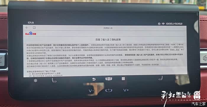 在车机任意可以搜索的界面,比如在应用那个界面,点击右上角 搜索(放大镜)图标,弹出键盘后,点击键盘区左上角的那个图标(输入法切换图标),下一个界面点击“更多设置”,下一个界面点击“使用帮助”,下一个界面点击“隐私政策”,进入隐私政策条款,往下滑动,找到蓝色小字“【账号与安全】”并点击,等待一会,会弹出来“当前网络不可用的界面”,点击左上角箭头(返回),【下一步需要注意眼疾手快】稍等会弹出来“出错了”那个界面,下边那一行有蓝色的“设置”,看到后迅速点击【这个界面稍纵即逝,需要尽快操作】,点击后即可进入后台设置。