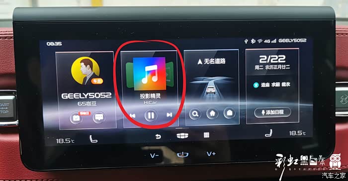 把购买好的Hicar盒子插入前边的USB插口,注意可能会不识别(这里吐槽一下吉利,能不能把车机的开放性放宽一点!!!)在Hicar群里咨询并自己尝试后发现不识别的原因是:吉利的USB供电不足,需要外接一个供电线。