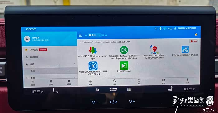 将准备好的存有APP安装包的U盘插入前边的那个USB,在车机上点击【ES文件浏览器】,打开U盘里的安装包进行应用安装即可【注意:ICON的车机芯片运算能力有限,建议不要装太多,且装且珍惜,装太多会卡死机哦】