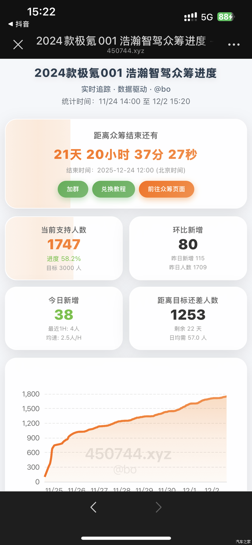 最后,车友们都在有技术的出技术,极氪不宣传车友到处宣传,帮忙点赞加抖+上热搜,所以有意向观望的车友们!不蒸馒头争口气。加油完成众筹!也希望极氪官方可以推广一下,不要在让众筹在一个小角落里。车的价格会随着时间不断下降,而你的价值会随着时间不断上升。很多厂家也不希望换智驾开这个头,还要被开同样车的愤青说傻子,傻不傻自己思考就好了。队伍在不断扩大,1500多人了,众人拾柴火焰高,希望所有友善的车友的车越拉越好开,能开很久。众筹了或还在纠结的车友可以进群,有很多热心车友给你答疑解惑。