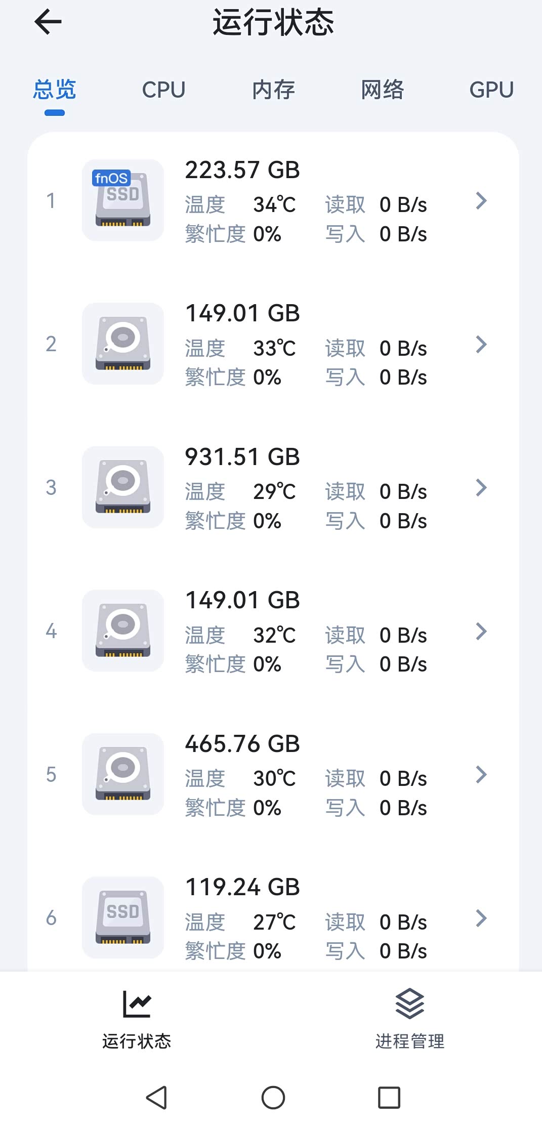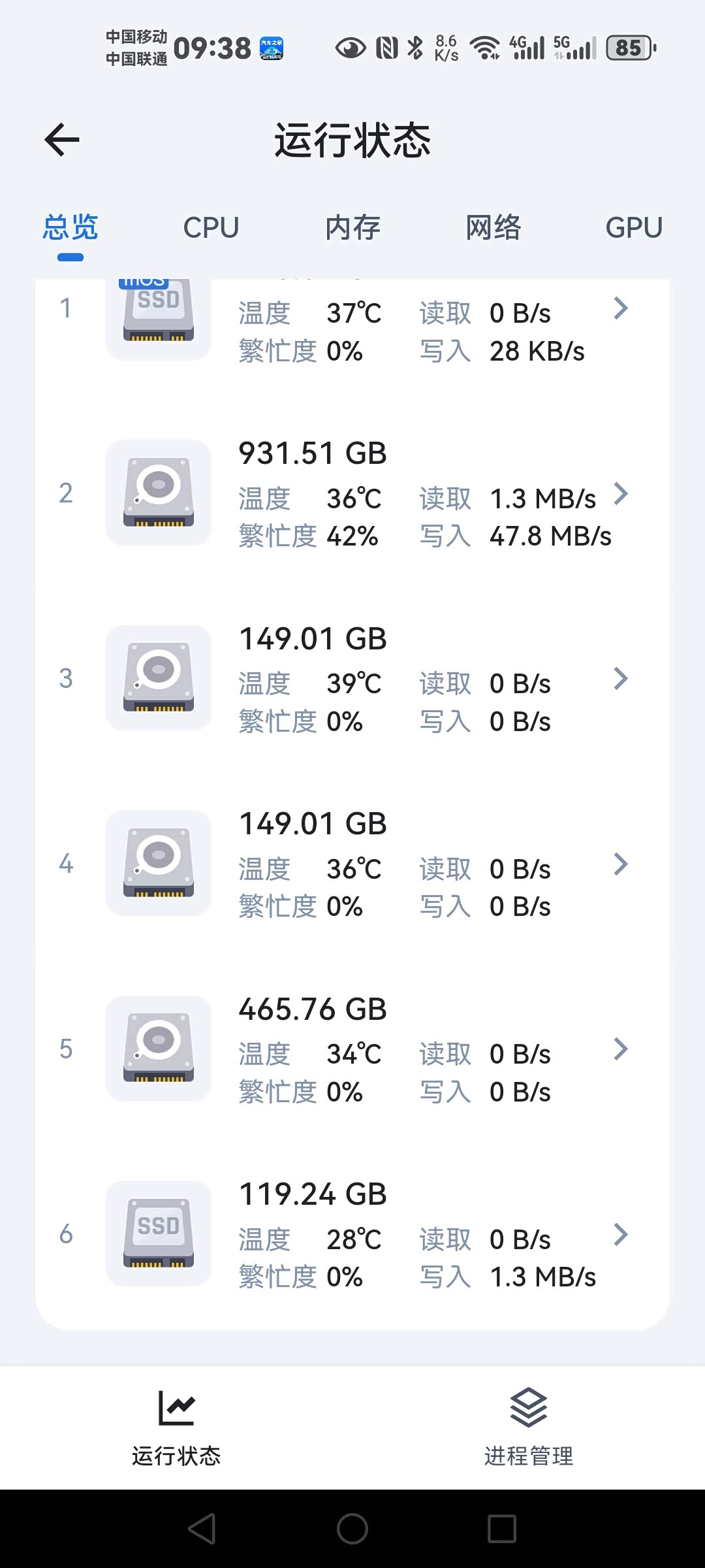 平时待机各硬盘温度