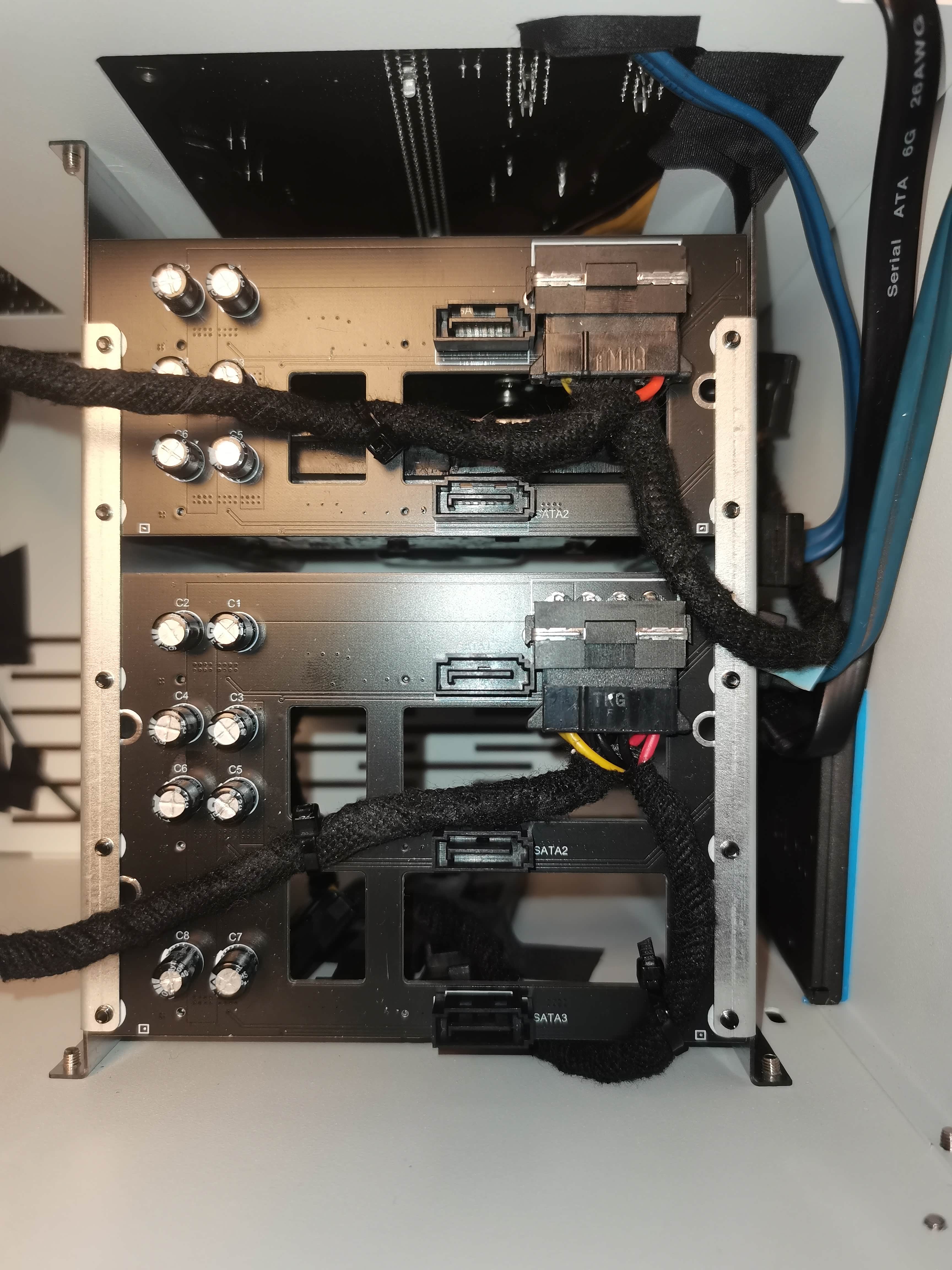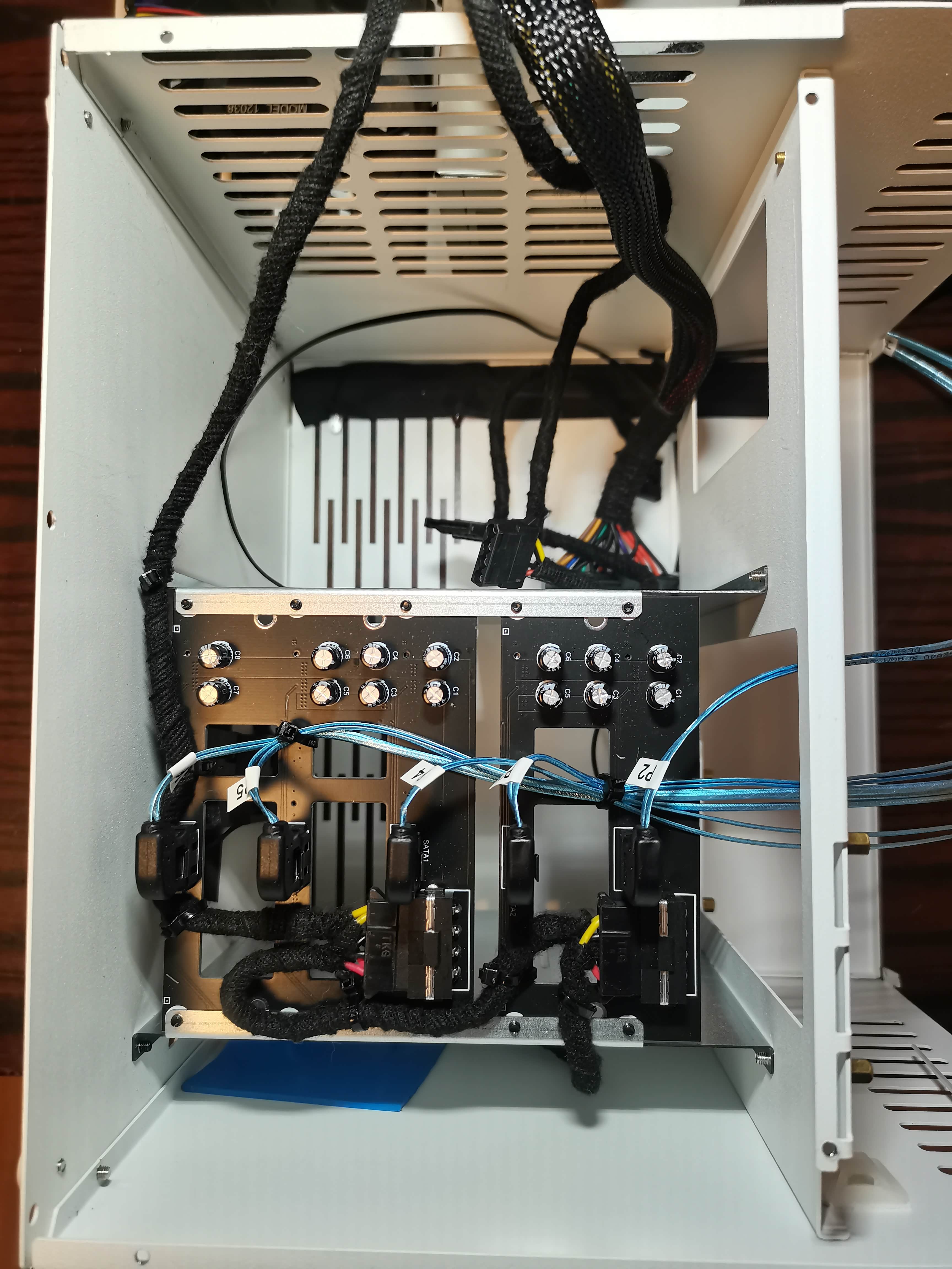 硬盘仓背板连接好电源 并且用扎带固定好