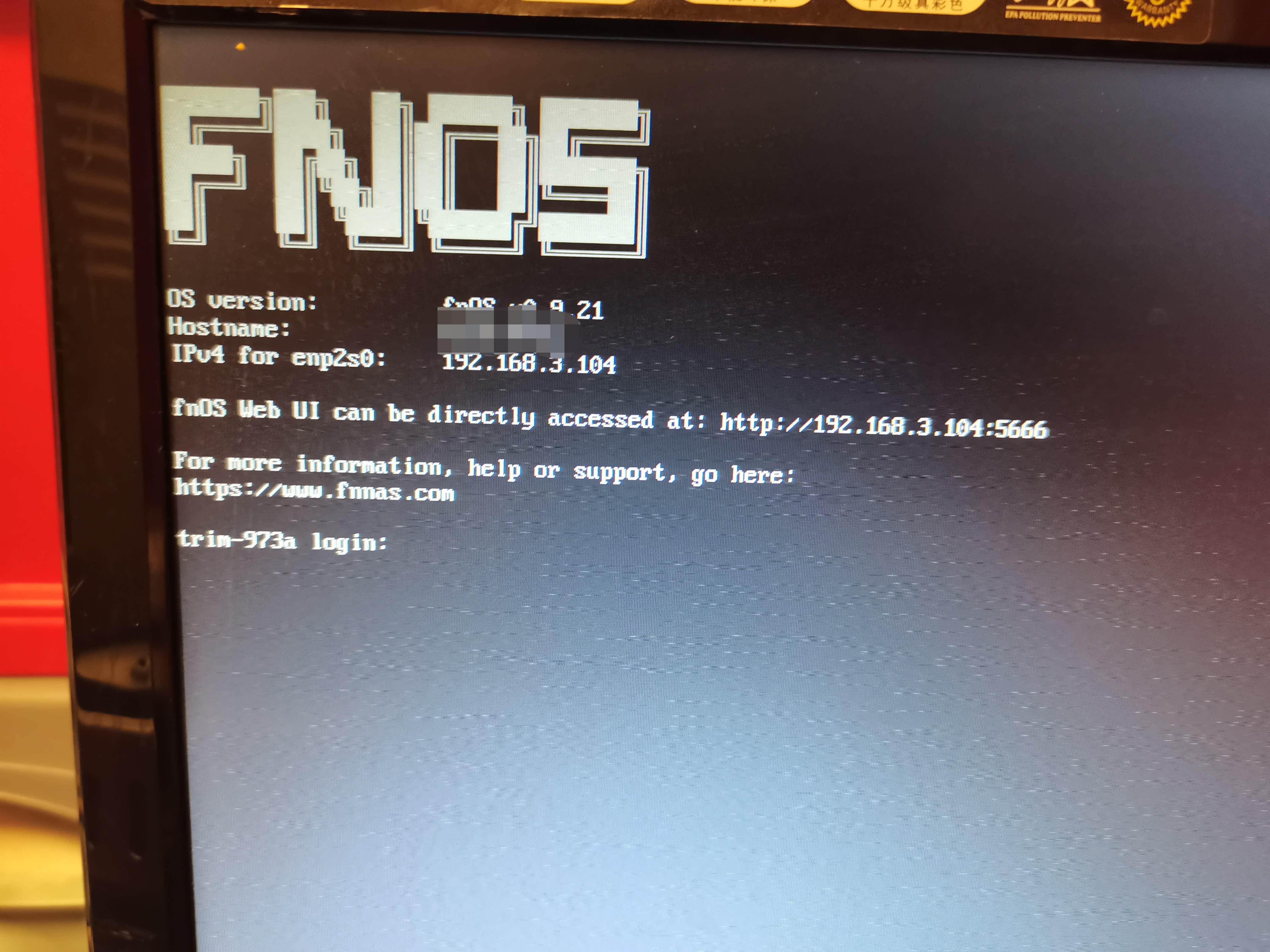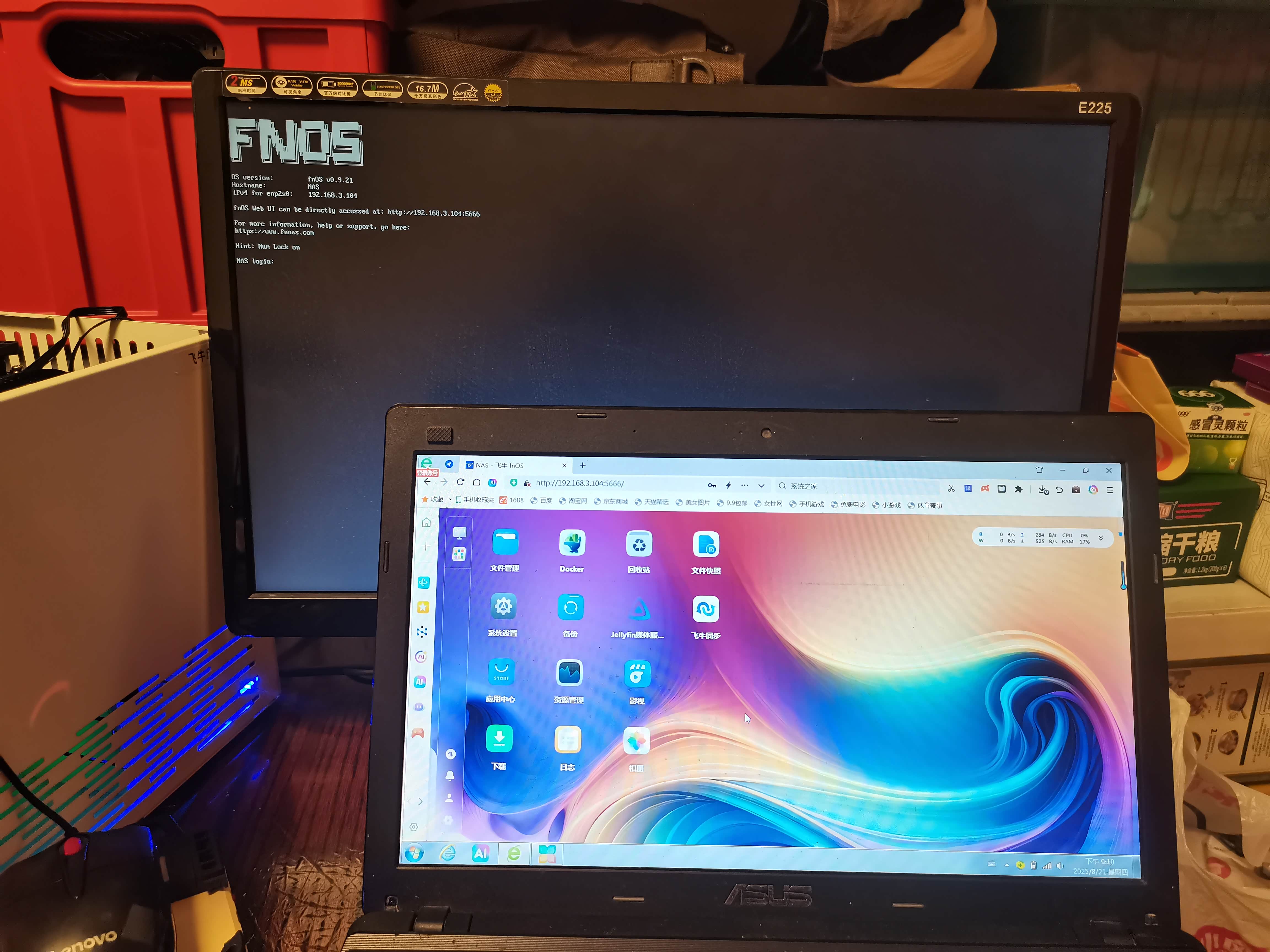 安装好飞牛FNOS系统 在局域网用笔记本电脑浏览器登入飞牛系统显示的IP地址进入飞牛桌面