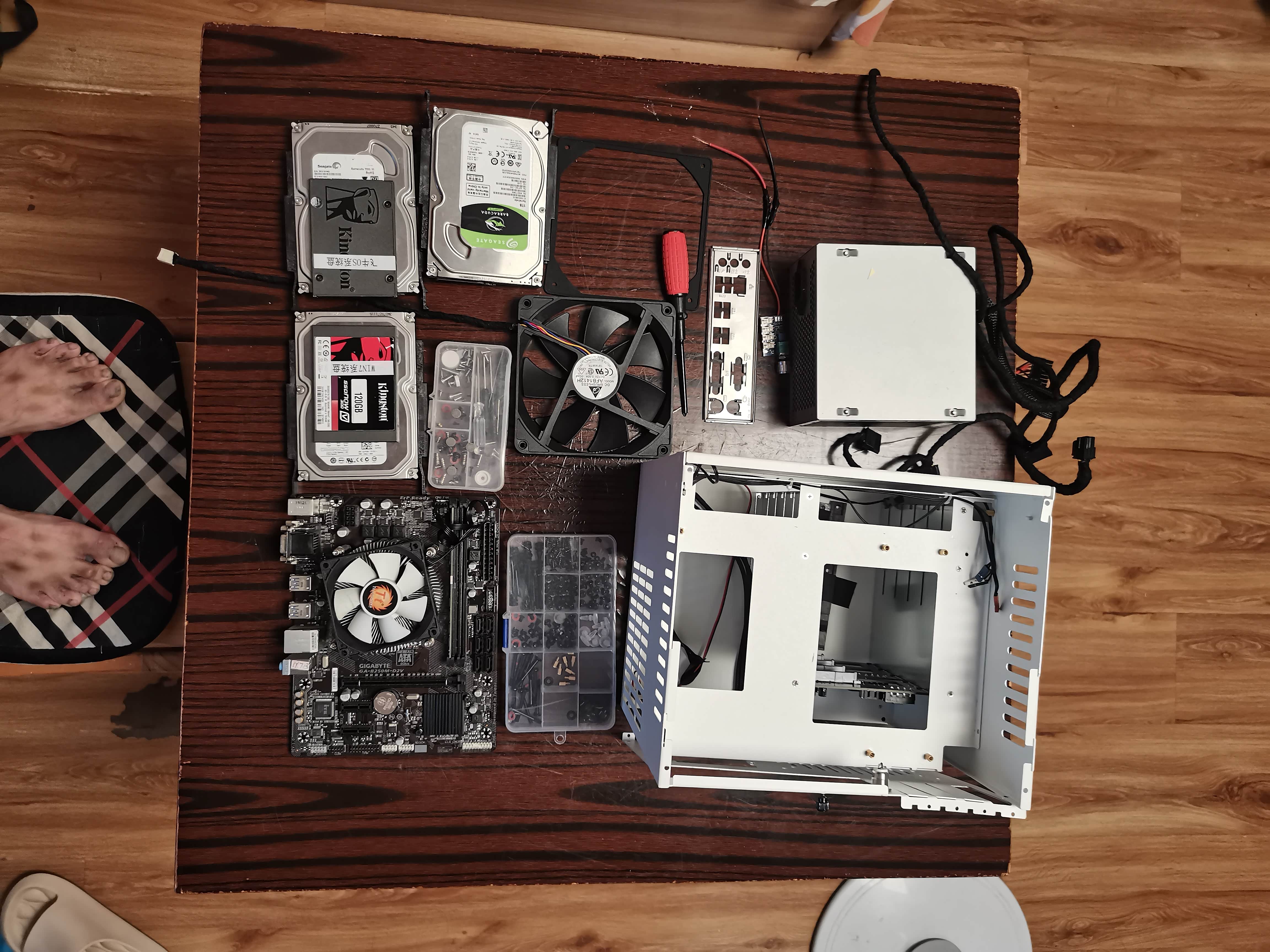 2019年买的电脑把主板和电源、硬盘拆解下来准备手搓飞牛系统NAS。来个全家照