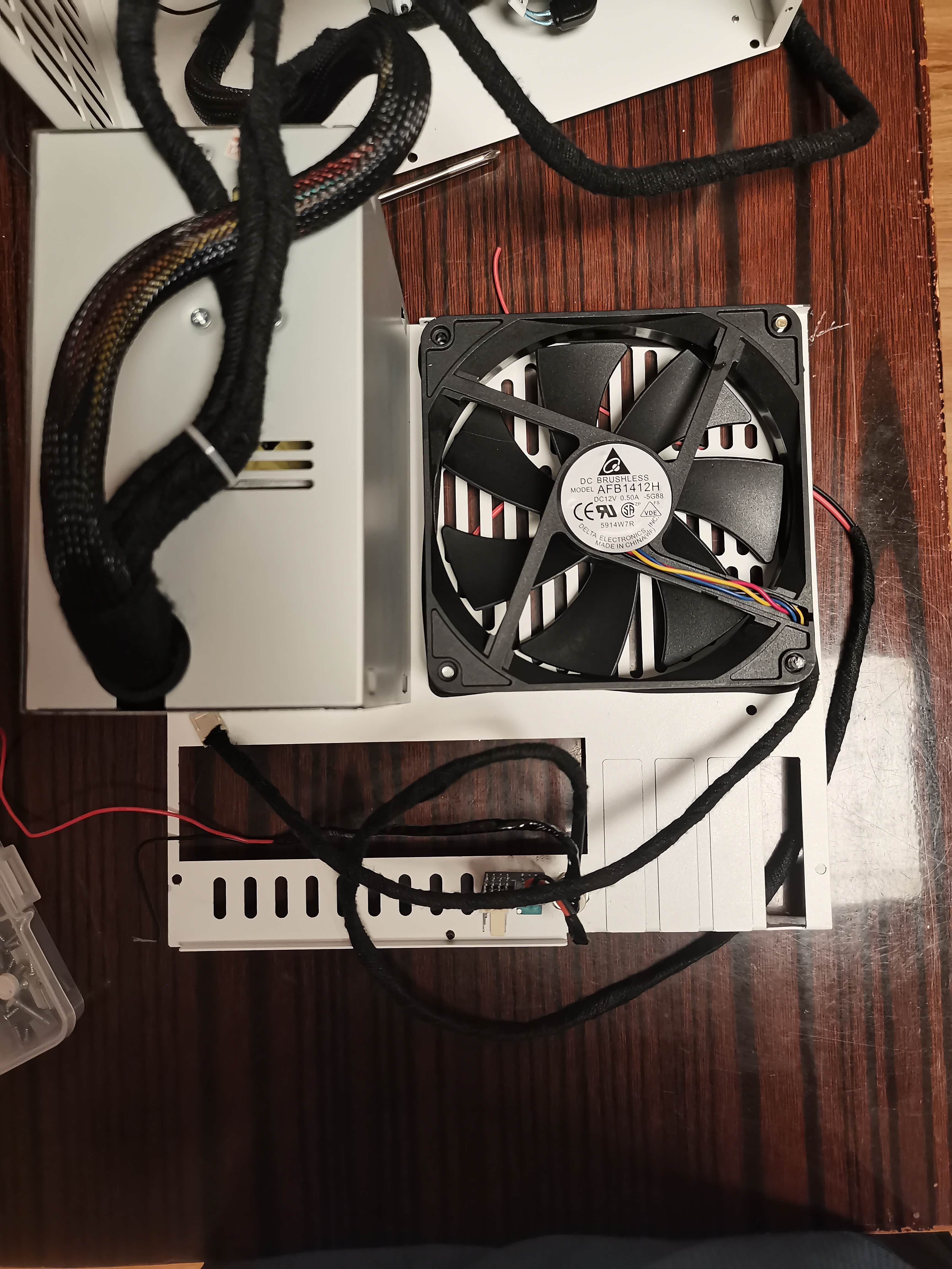 安装好的ATX电源和14cm风扇