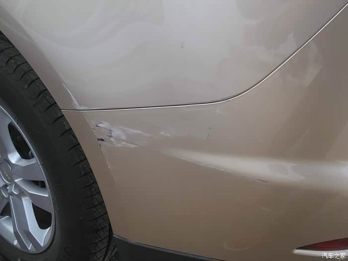 2、尾巴不知道啥时候被人刮了,看不太严重,也没有修。在修上次事故时一起碰了个漆