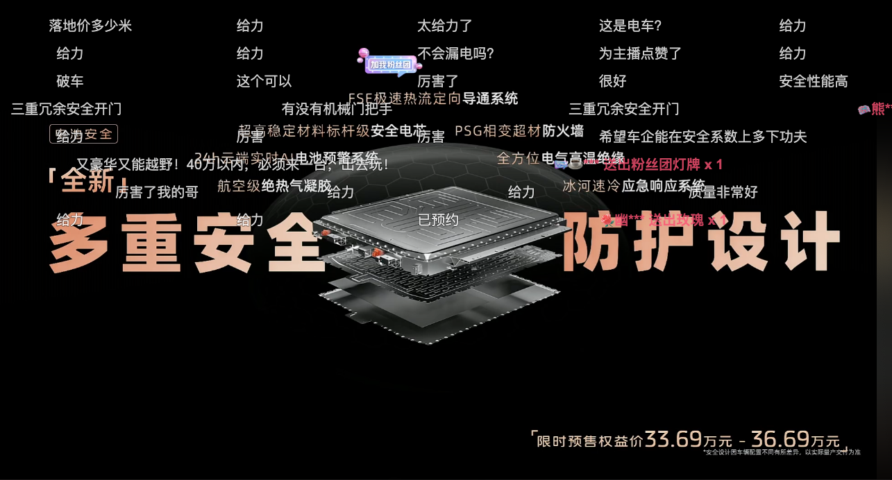 (4)电池。十五万辆智己车零自燃撞燃。1000度耐烧10分钟的防火墙,5分钟防止热扩散的气凝胶。热流导通系统,速冷应急响应系统,电池预警系统。
