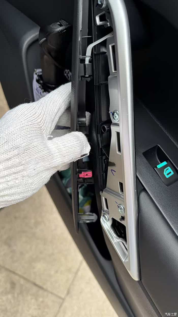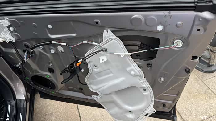 1,车门都是三颗螺丝,开门把手处一个黑色,关门拉手处两个银色,拧下螺丝之后,从车门下方有缝隙的地方,用力拉内门板,下面都是卡口,拉开之后,向上提,就拆下内门了,