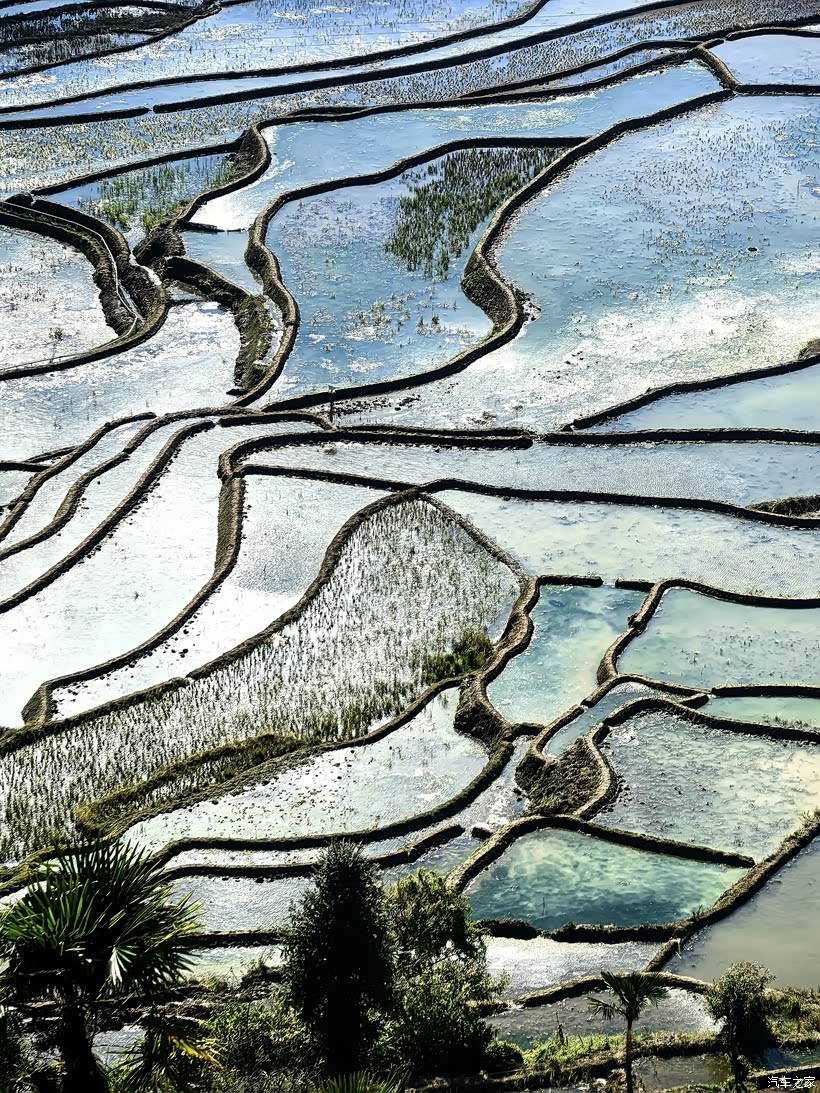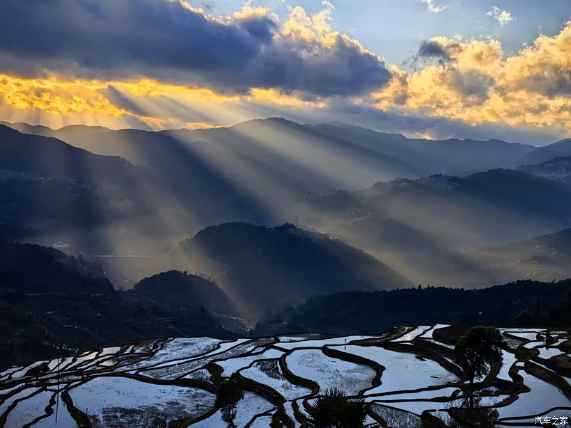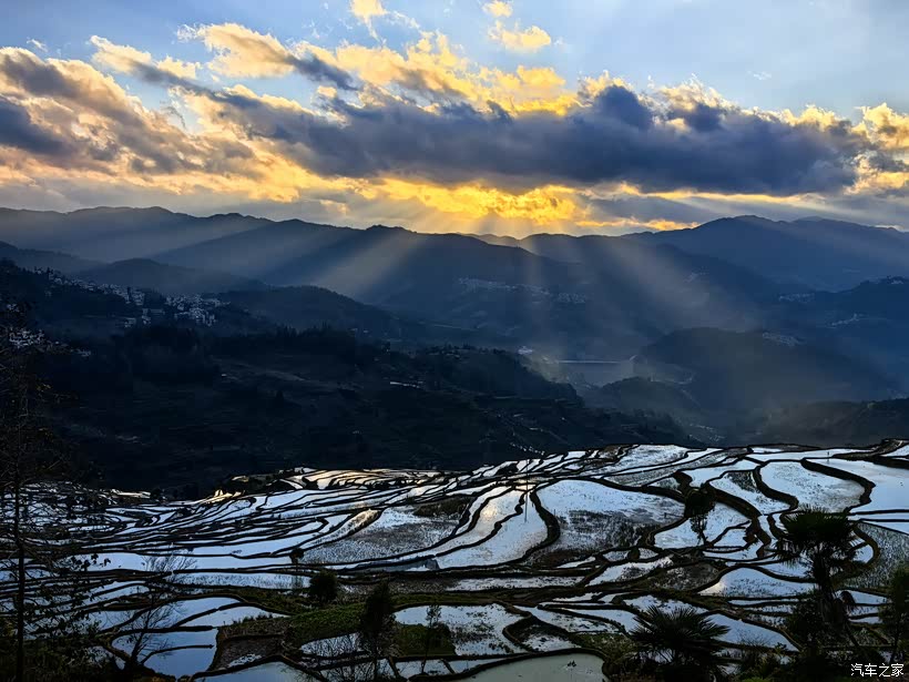 当第一缕阳光穿透云层,洒在梯田上,金色的涟漪层层扩散。