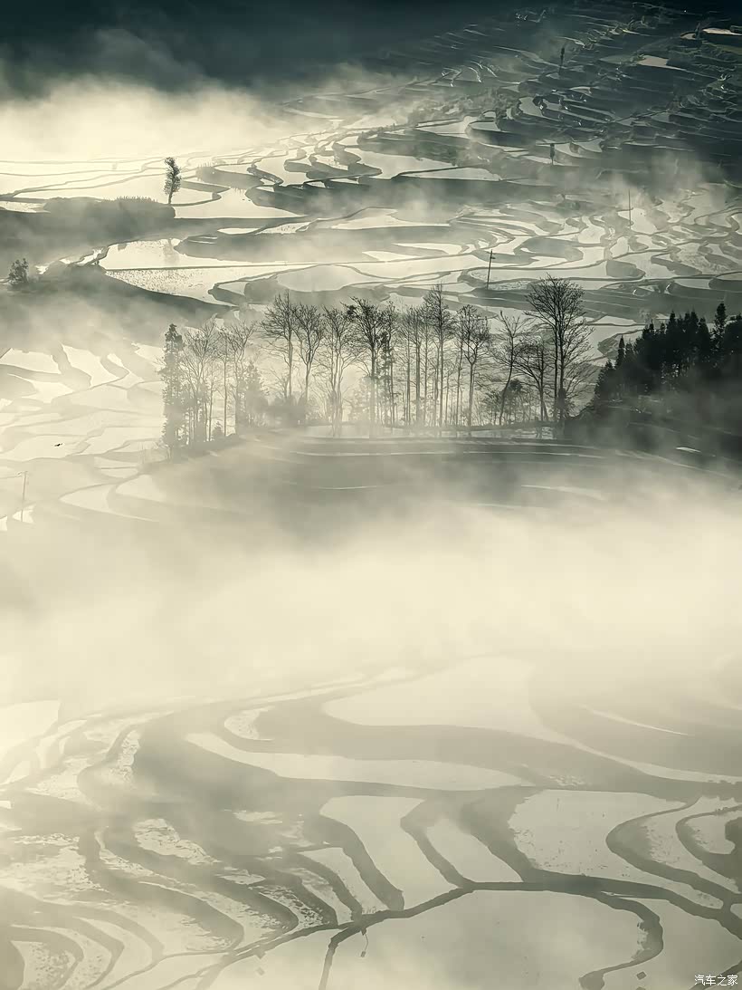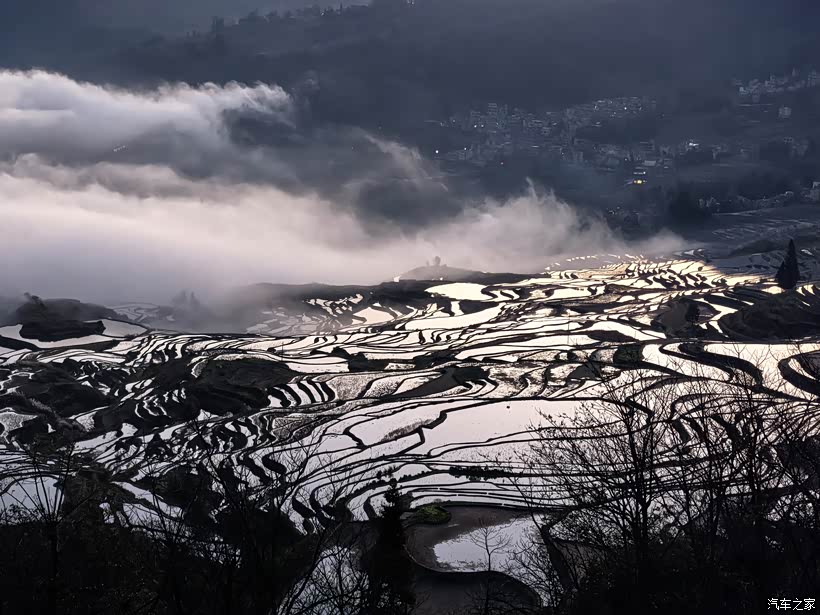 下车远眺,灌满水的梯田如万千面镜子,倒映着漫天霞光,瑞风RF8宽大的后备箱轻松容纳了我们的行李箱、摄影器材,此刻正充当着临时储物间,让旅途格外从容。
