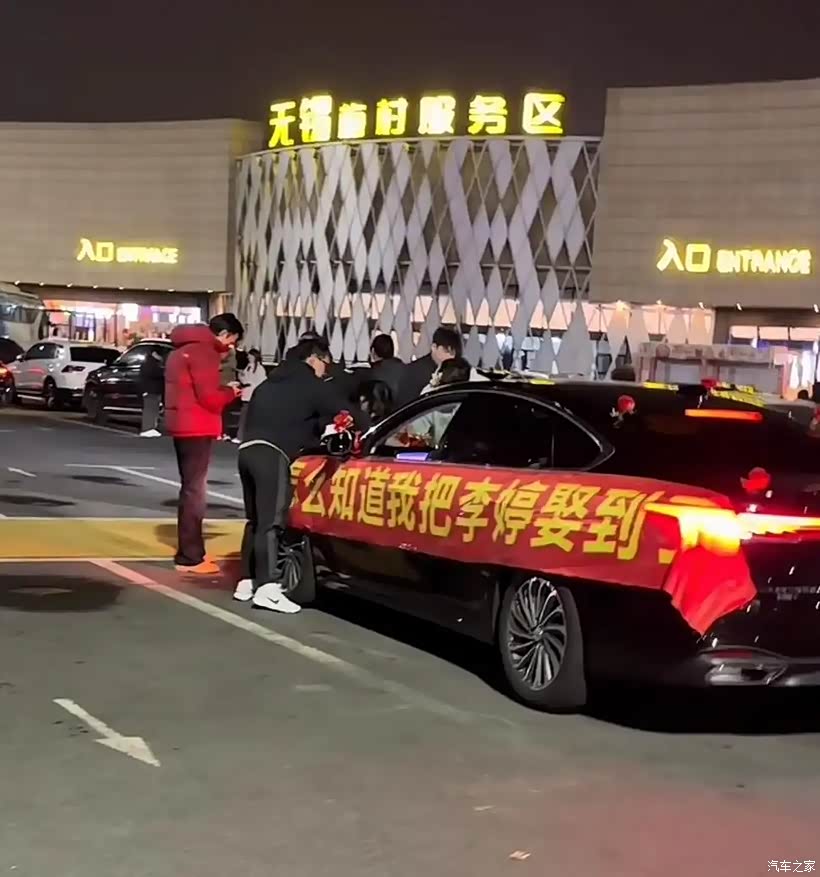 2月11日,一名车友在昨天上海回河南的路上,碰到了这台婚车,新郎自己开车新娘坐在副驾。前后没有别的婚车,之后越来越多回家过年的车,打开双闪加入,组成了一条临时车队,很多路过的车主也打招呼竖大拇指。开到服务区时,新郎新娘下车发了喜烟喜糖。