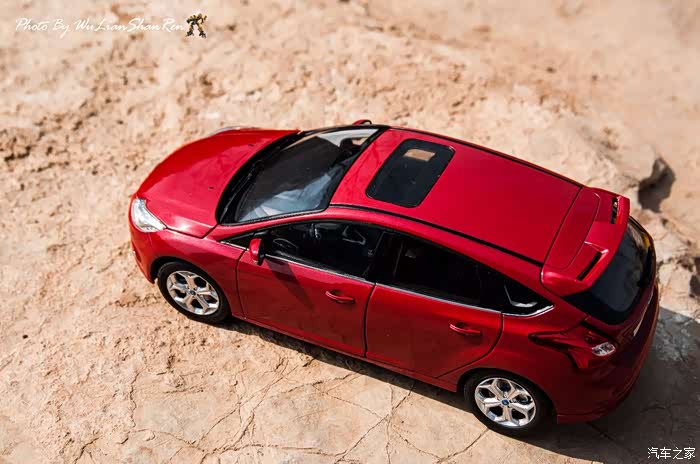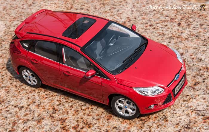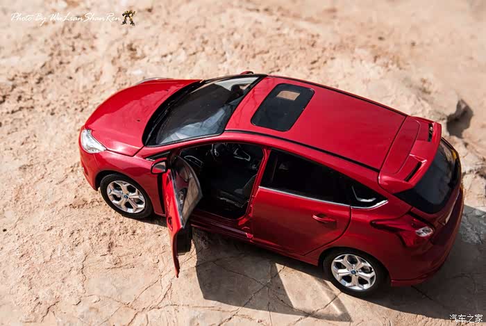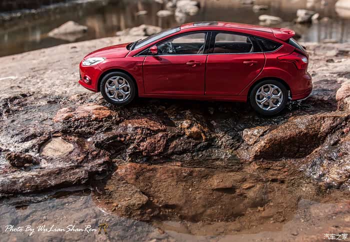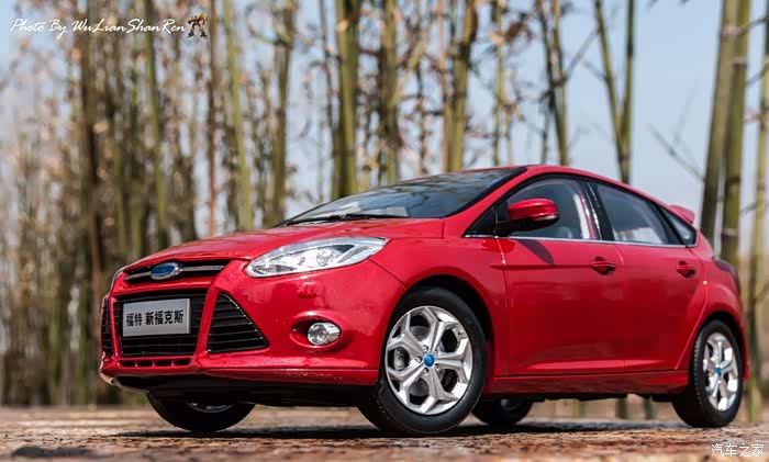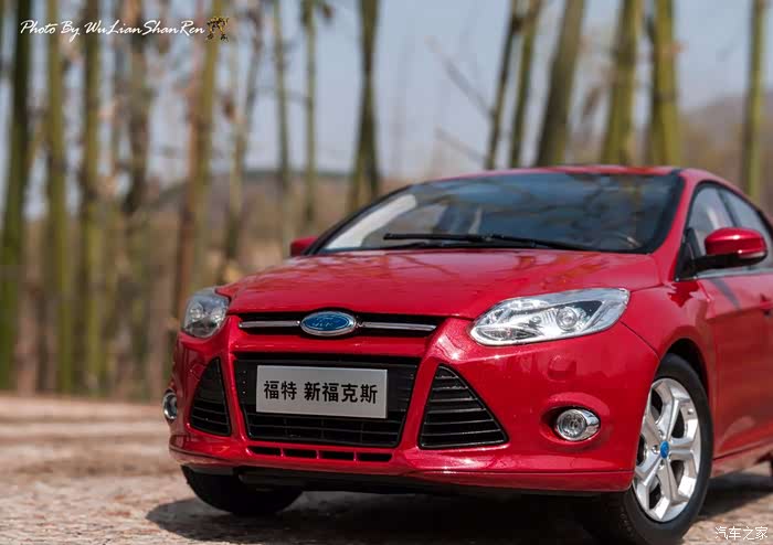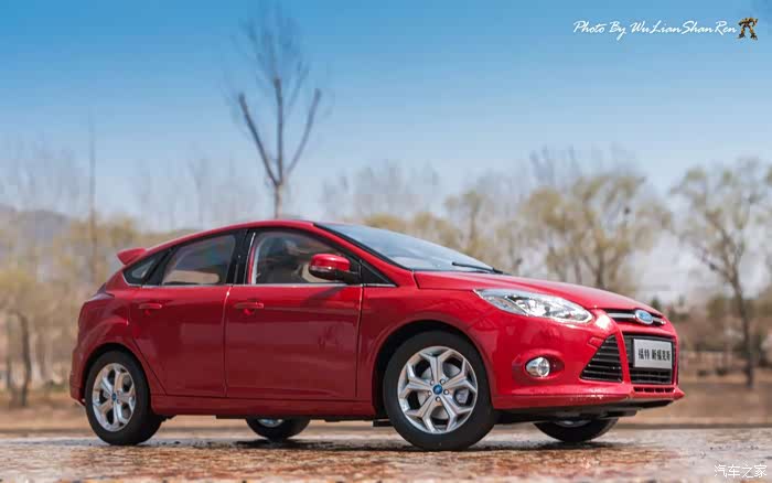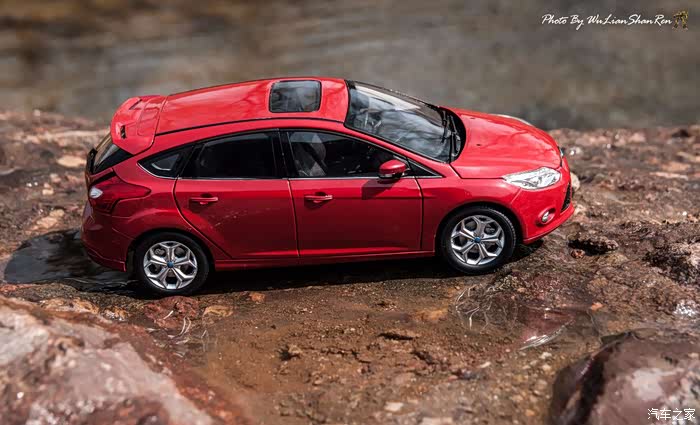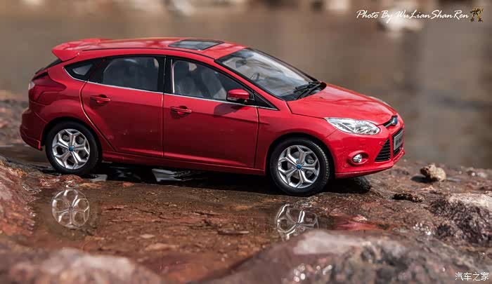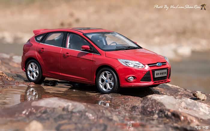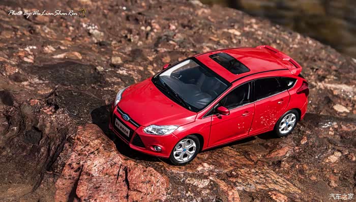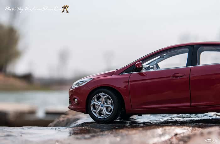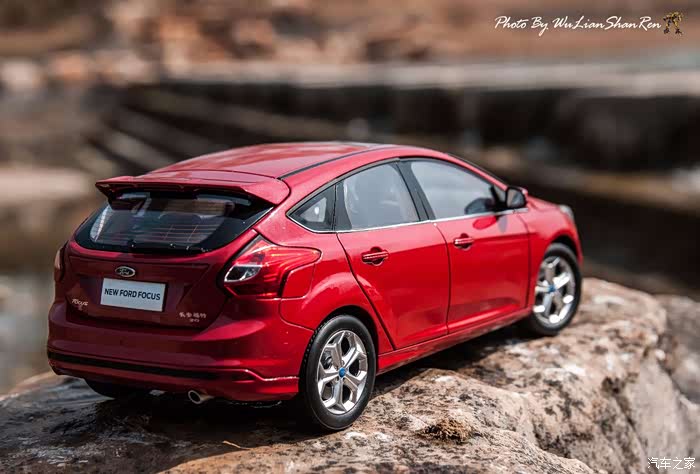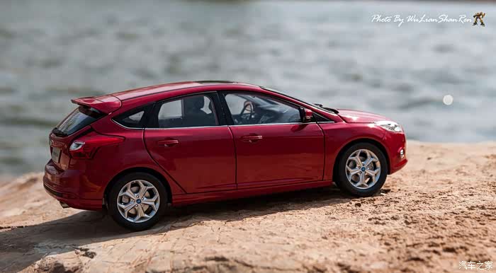 福克斯是一款经典的车型,本次出镜是12款的福克斯原厂模型,比例为1:18,拍摄场地在五莲洪凝河畔。福克斯从第二代车型开始进入中国市场,以运动、操控见长和年轻、动感为主要形象,在国内紧凑级车型市场取得了良好的成绩,随着车型日益成熟,消费者的年龄层也产生着小幅变化,客户群的年龄范围更广,也因此在几年的时间内累计销售了几十万辆福克斯,所以新福克斯的表现对于福特来说尤其重要,这点与在我刚刚抵达酒店时看见真车的感觉相吻合。档次感上的提升是我在初见实车时的第一个感受,无论一款车内在品质如何出色,但不可否认的外观往往是可以令人在第一印象上有加分的方面。从细节处看,两厢车型与三厢车型定位略有不同,三厢车型的稳重感更胜一筹,也可以说是更低调一些,深色的保险杠下沿和更中庸的轮毂造型都与两厢版不同。反观两厢版车型上,不仅在三厢版车型黑色的下沿部分采用了与车身同色的设计,并且在2.0L的两厢车型上还采用了更大尺寸的轮毂和更大尺寸的轮胎(205/60R16与215/50R17)。对于这个级别的原厂车来说两厢版车型所采用的尾翼尺寸也算得上显眼,连排气管的装饰和侧裙边这种细节部分也没有忽视,都采用了视觉效果更运动的处理。在车尾的标识上,两款车也均有所不同,这里采用了福特在国内惯用的标识方式,两厢版的高配2.0L车型为“FOCUSS”,而三厢版车型则是“FOCUSGHIA”,其实大致的意思一样,都表示这两辆车分别是各自车系中规格较高的版本。新福克斯的内饰设计已经与老款车型完全不可同日而语了,如果说老款车型的内饰更多的是在实用性方面的考虑,那么新福克斯的内饰则具备更多的修饰元素。内饰的设计中充斥着立体的线条,让新福克斯的内设看上去充满棱角,但你不必担心这些棱角会如看上去般坚硬,实际上新福克斯的内饰选材仍然十分慷慨,所有可能在事故中危害乘客的部分都采用了软性材质。并且内饰装配工艺上也进行了提升,即便是更容易看出破绽的浅色内饰也不会在让人轻易看出纰漏,但话说回来,相比很多竞争对手而言,新福克斯的内饰仍然称不上精致。