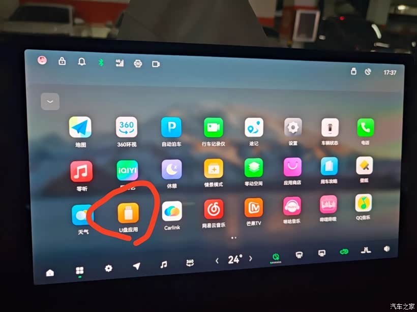 第二,应用安装包放置的位置。应用安装包的.apk文件要放在U盘的根目录下面。也就是打开U盘直接看到的文件和文件夹所在的位置。第三,将U盘插在查到前排的U***口上,C10在车机中央扶手箱下面。第四,打开车机找到U盘应用,会自动识别安装包,然后点击安装即可。第五,安装完成后,就可以在车机所有应用里找到安装好的应用图标了,跟手机一样打开就可以使用了。