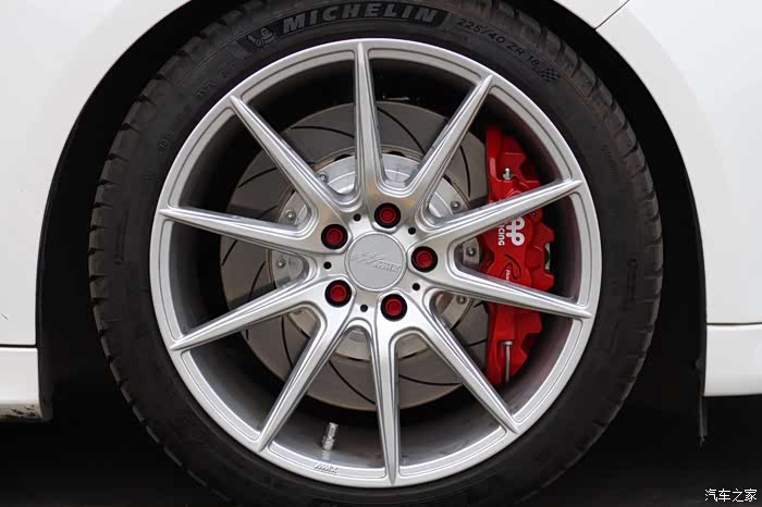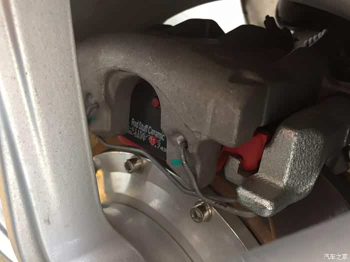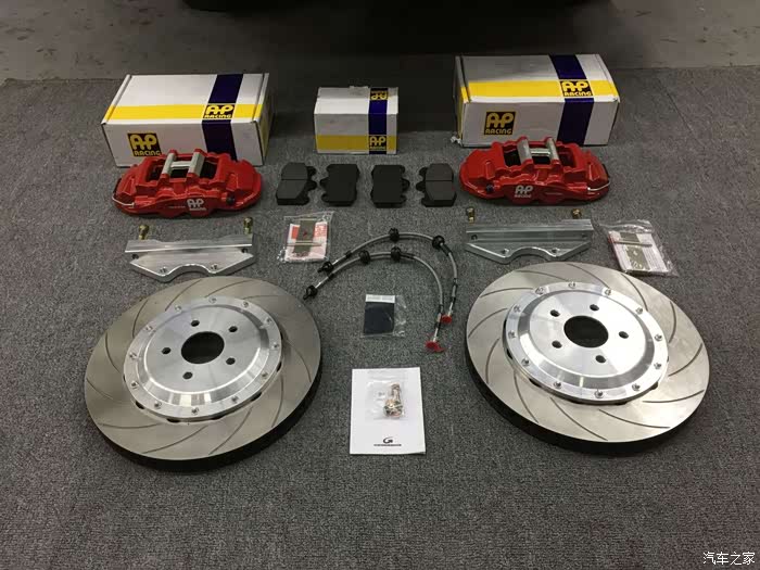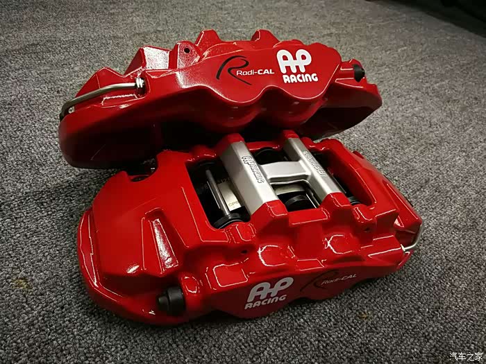 (15)AP racing 8530大四活塞刹车一套(卡钳刹车片油管原厂其余组件国产) / 关于刹车我是纠结了最久的,对于小福,其实最适合上AP 9440或者9200大四活塞配个330的碟加上17寸轮毂,饱满好看并且重量减轻不少。可惜我上了18寸的轮毂,330碟显小了,9440/9200卡钳也显小了,日常也不下赛道,其实也不会经常飙车,***似乎更实际些,所以颜值第一,也不想改色,想来想去,考虑到与原车刹车泵的匹配,最终选了大四里面个头最大的8530骚红色配355盘,饱满,大气,上身效果超乎我的期望,看来选择没错。说到这里不得不说下原装这个问题,首先我不想多花钱,只选大四活塞,那么自然动辄两万以上一套的布雷博,Alcon ,stoptech ,endless 直接忽略,那么只剩下AP 和台产的可选,台产的JBT 之类的不说别的***显然不够,花了钱心有不甘,于是只剩下AP 。好了,真原厂基本15000-17000,超预算,我只能退一步:除了卡钳,刹车片和油管原厂,其他选用可靠的国产件就好,所以12000搞掂,反正不凑近仔细看又看不出,安全的前提下能***就行。至于市面上那些低于一万的甚至只有5000左右的AP 刹车套装,奉劝大家小心为妙;