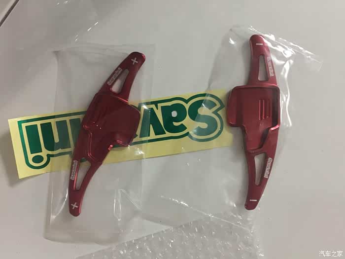 (24)原厂换挡拨片+sawanini 铝合金拨片延长杆/ 一开始以为这只是个***的东西,但是使用过后发现还真心的好用,为什么呢,先不说D档介入,起步,挂S档,一脚跺下去,像我这种胆小点的到了5000多转,右手拨一下,指针弹回4000时再跺一脚,然后再等到5000多右手再拨一下,等到了3档,瞄眼仪表,110多了。推背感就是这样制造出来的,用过了才明白原厂自动变速箱有多慢,这才是这台车想快就能快的武器;