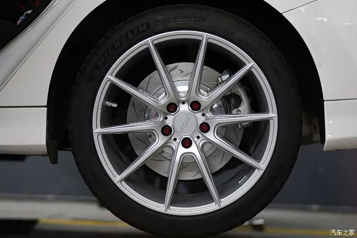 (13)MMX 1601银色18英寸轮毂一套+米其林PS 4运动轮胎225-40-18一套 / 其实原配黑旋风轮毂样式还不错的并且原配米其林LC 博越轮胎也挺厚道,只是我接受不了原厂轮毂的参数(狗日的ET 50,缩在里面小气的要死,17寸倒是不算小了),并且215的宽度对于运动来说还是窄了点,还有一条就是在我激烈点驾驶的情况下,整个轮子会跳动,给人信心不足,不加法兰盘刹车也改不了,可是我一向拒绝法兰盘,综上所述还是决定换了。预算有限,OZ或者BBS 或者RAYS 的看看就好,ifg 的做工欠点并且强度只是够用还烂大街,咬咬牙还是MMX 吧,由于1602中心不内凹不好看(其实选1602也挺好,还轻一点),1603太纤细太空洞,1609太斯文,也只能选回1601。黑色,灰色和银色对比了之后还是只能选银色,因为黑色或者灰色19寸还显小,很无奈。关于轮胎选米其林PS 4没啥好纠结的,抓地和排水非常不错,比原厂LC 好一个等级,如果没有它,就是倍耐力的P0了。关于轮胎尺寸,其实原厂数据是235-40-18,可惜没货且价格贵很多(1300多一条),所以只能退而求其次选了大众化的225-40-18,这个比原厂的轮子直径要小一公分,时速表偏快,简单说就是表上120了实际也就110多,不过我无所谓。舒适性则是215-50-17大于235-40-18大于225-40-18,所以等三万公里后我会换成235-40-18;