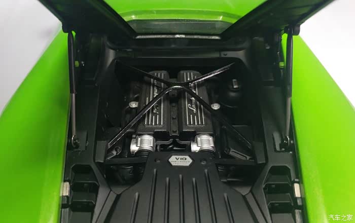 发动机中置,那么储物空间只能设计在前边了,连挺杆都做这么细致,做工真不是几百块的车模能比的。就喜欢这种小细节,工匠精神的完美提现。