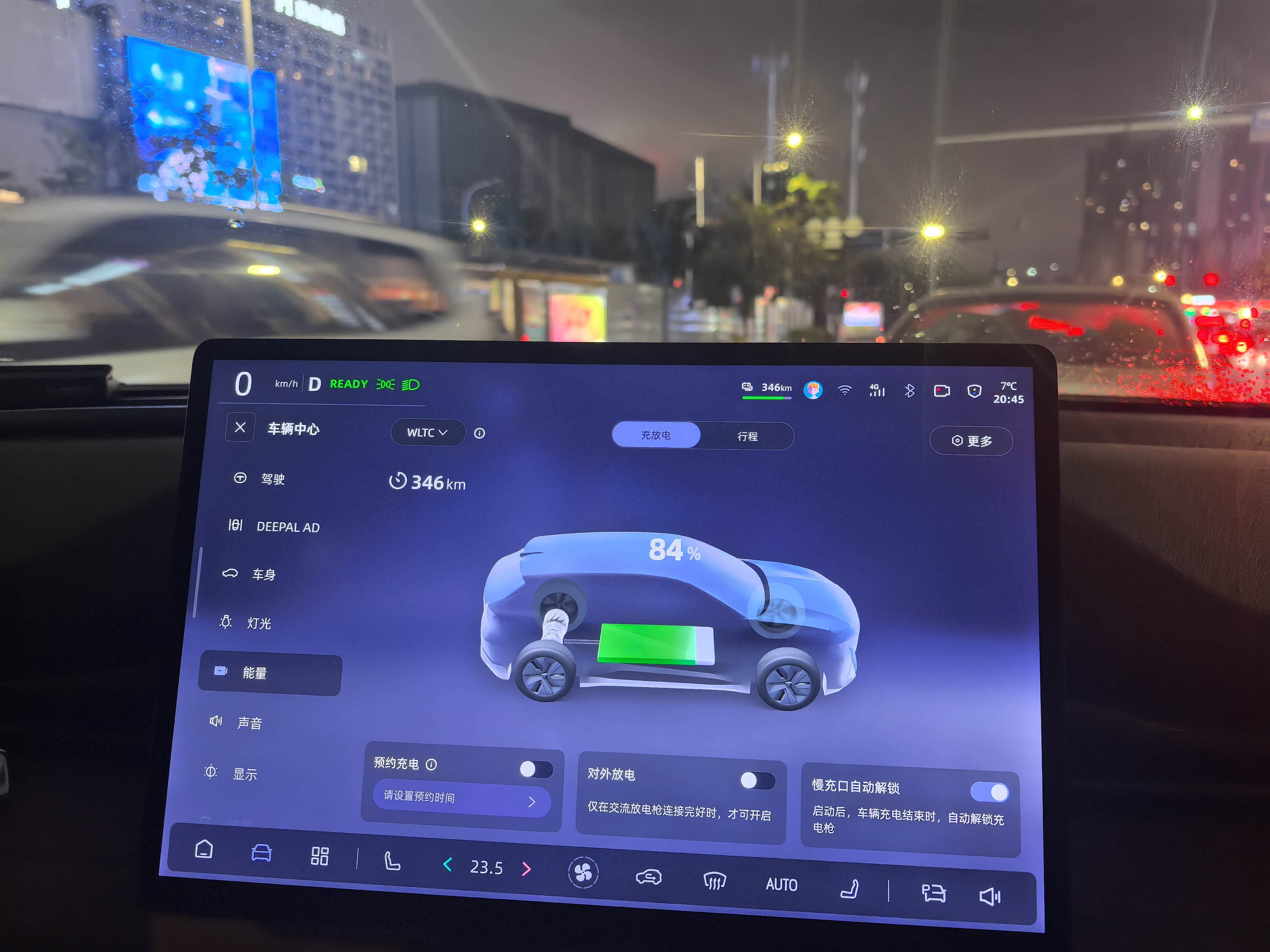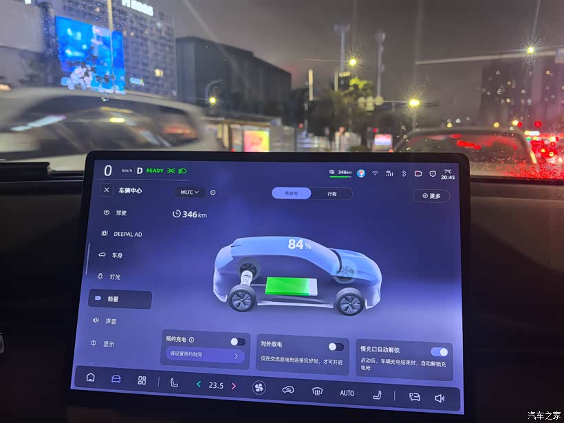更爽的是冬季,贵港市平均气温基本在10℃左右,基本上可称得上是个没有冬天的城市。我连“省电小妙招”都懒得特意研究,续航几乎没折扣,不用像北方车友那样焦虑续航缩水。日常接送娃的时候我会切到经济模式,少猛踩油门,不知不觉又能省一点。