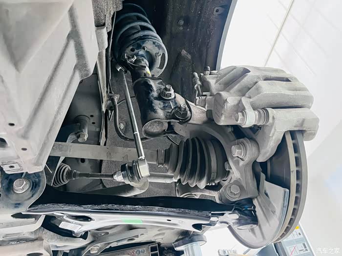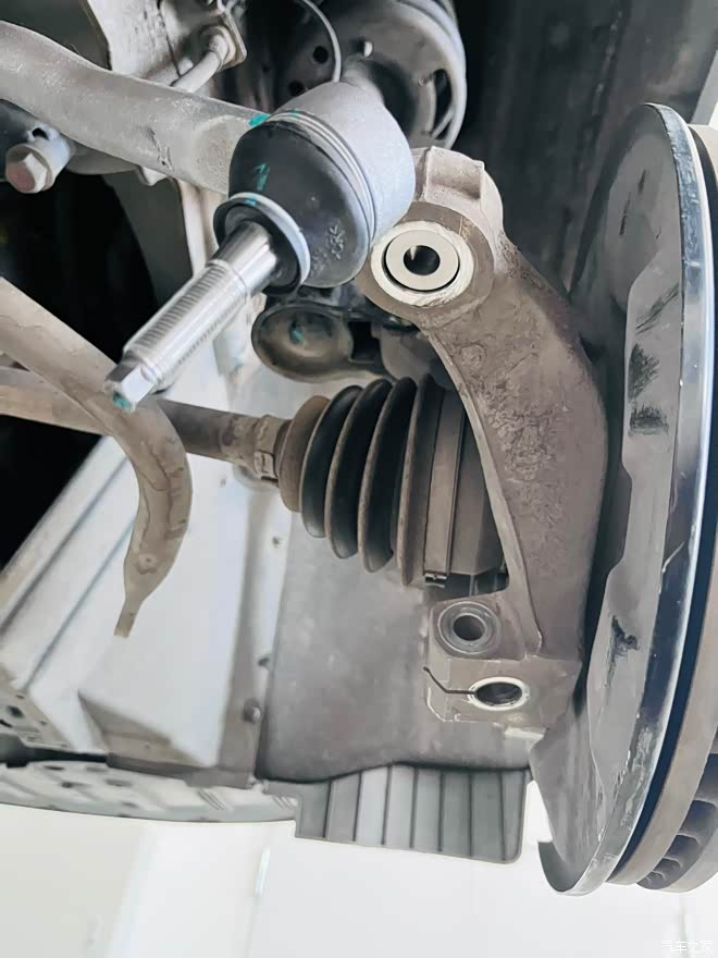 说到方向机球头拉杆,它其实是真的坏了。刹车时,能明显感觉到一种刹不住的回跳感,“嘣嘣嘣”的。到4S店检查,维修师傅把车抬上升降机后,发现车轮左右摆动时有“嘎嘎嘎”的空旷声,凭借经验,很快就判断出是方向机球头拉杆内部损坏了。