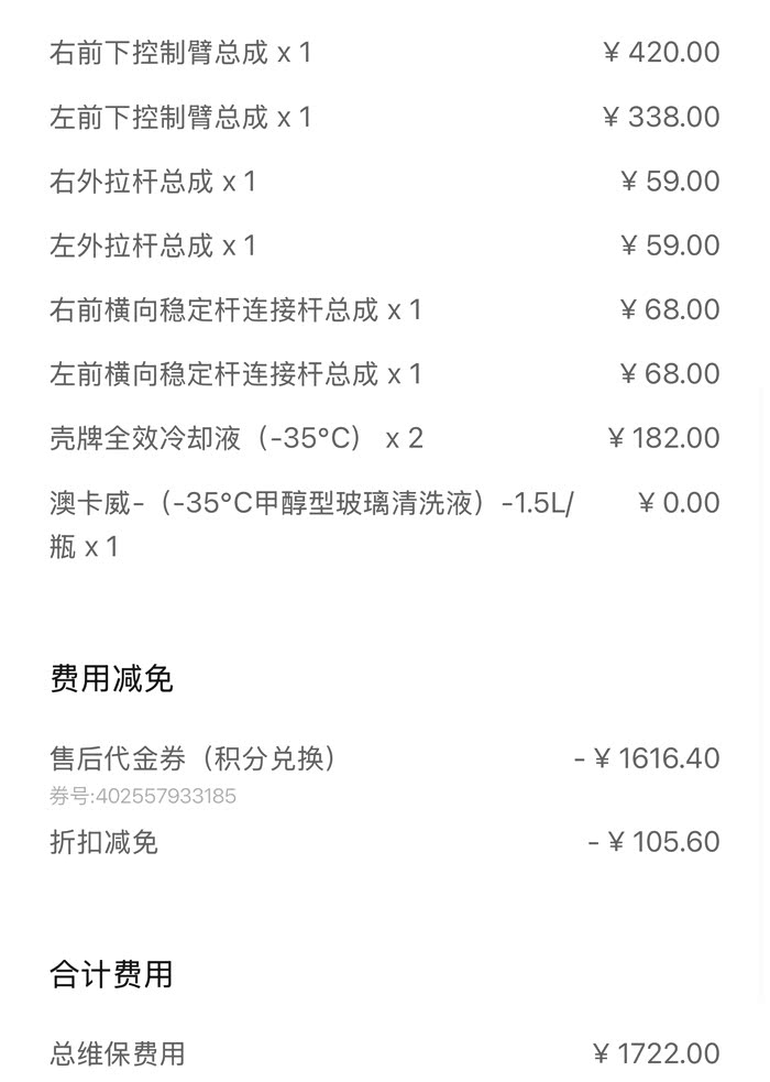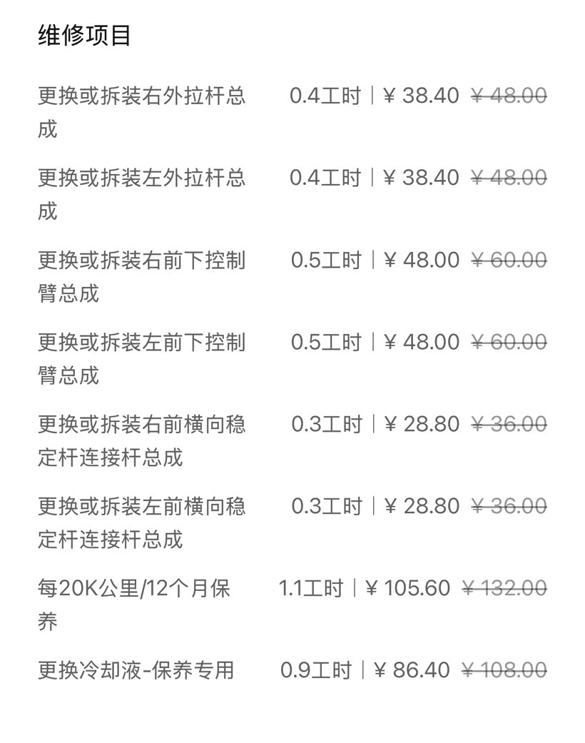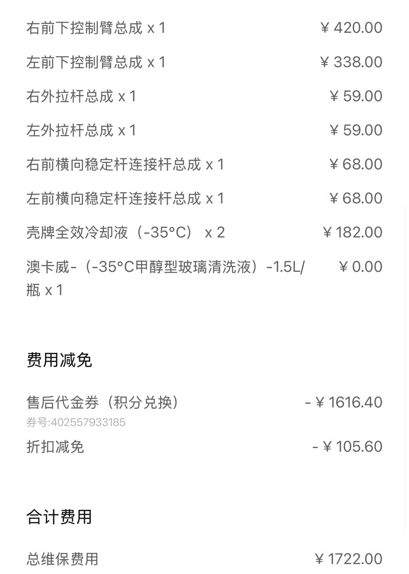 这次保养可不只是换避震器这么简单。考虑到车辆的“健康”,我还更换了全车冷却液,包括电池和电机的冷却液。此外,下摆臂、小拉杆、方向机球头拉杆也都进行了更换。