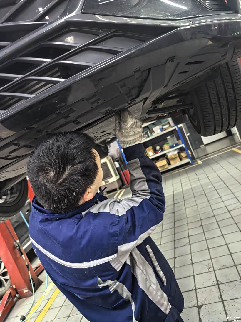 “您这底盘挺干净的,看来平时跑的路况都不错。”他一边用扳手挨个拧紧底盘螺丝,一边跟我解释,“新车出厂时的螺丝扭矩是标准值,但经过几百公里的颠簸,有些会稍微松动,必须重新紧固,不然高速行驶时可能会有异响。”