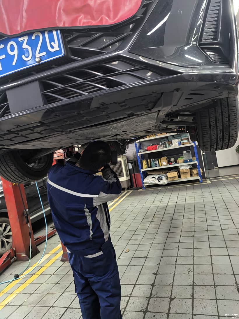 当艾瑞泽8被举升机缓缓托起时,我终于第一次完整看到了它的底盘。师傅拿着手电筒,蹲在车底一寸一寸地检查着,从悬挂臂到球头,从刹车油管到油箱护板,每一处都看得格外仔细。