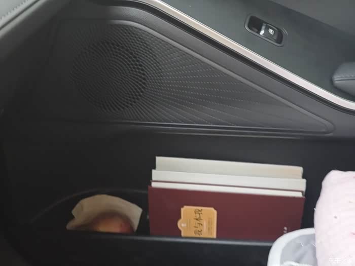 前门右侧储物格我放了一个苹果是用纸巾包起来的防止磕碰,还有两本书,看看书会让人静下来多思考
