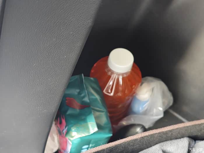后备箱左右各留了一个储物格,放些容易晃荡的东西还是很方便的,加油宝玻璃水洗衣液面巾一起放在了左侧,这样软硬搭配不容易磕碰