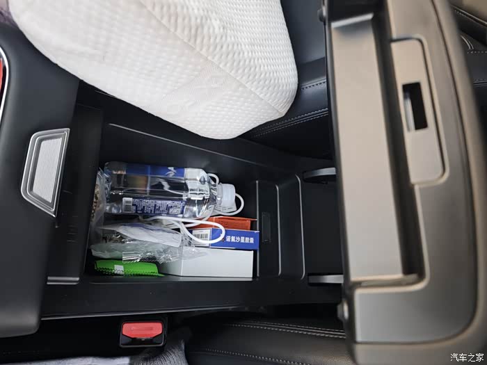 中控后面的储物格纵深和宽度也是设置的比较合适,放些常见的药物饮用水数据线还是非常方便的
