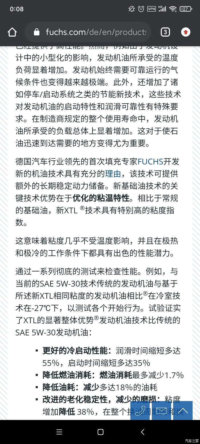 为了解这款机油如何办到这么低的粘度系数和福斯引以为傲的xtl技术,就跑到福斯海外官网去了解一下xtl技术到底是何方神圣。这一查还真有所收获,原来xtl技术是一种新基础油技术的关键技术,优势在于优化的粘温特性。相比于常规的基础油,新XTL ®技术具有特别高的粘度指数。