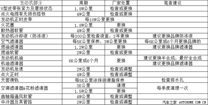 随车的质量担保手册阅读及理解起来不是十分顺畅,本人根据原车手册重新制表。