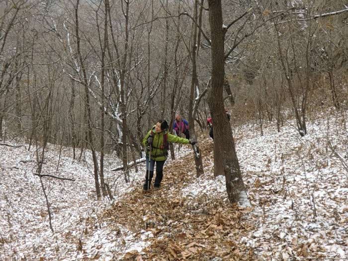 回头望去,被我们走出一条S形路,创意不? 这就是驴友精神,条件艰难,道路崎岖依然抵挡不了我们登山的兴致。
