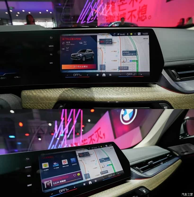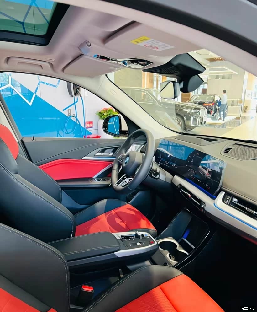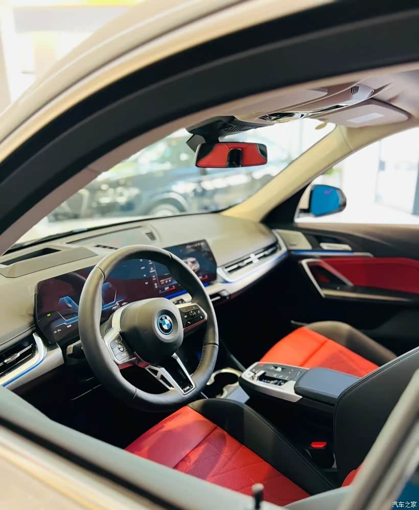 试驾体验:家里已经有一辆燃油轿车了,最近每天都要开80公里左右,所以又动了心思去添置一辆电车,正好全新宝马ix1上市,就抱着试试的心态去了,一开始在展厅看到展车,那霸气的前脸就吸引了我,给我一种宝马X3的既视感,内饰橘红和黑色的搭配也彰显年轻运动,简单的看了一下车之后,在销售的引导下,填好了试驾信息,开始试驾之旅,在试驾专员的介绍下,我对这个车有了更深的了解,全新的贯穿式屏幕,哈曼卡顿的音响,类似赛车的座椅,包括各个功能的介绍。