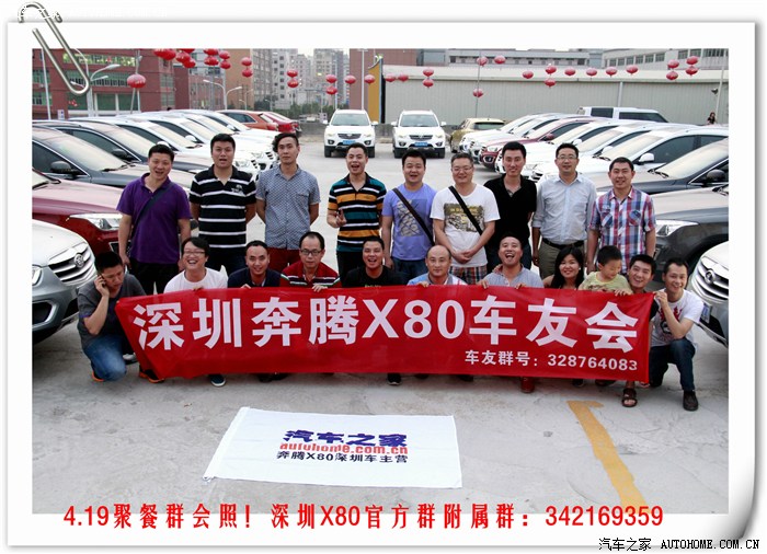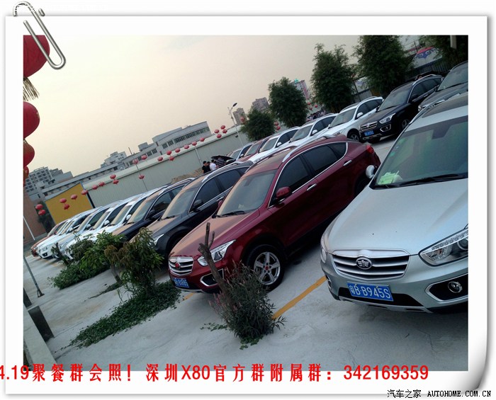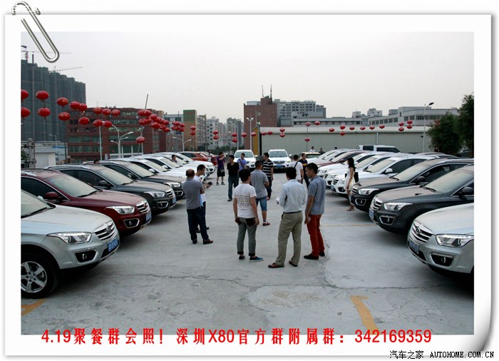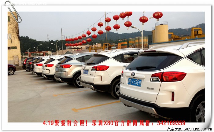 各位车友好!这是我们深圳X80官方车主营前几天发的聚餐群会招募贴,还算不错,得到了大部分车友的响应!http://club.autohome.com.cn/bbs/thread-c-3000-29281939-1.html