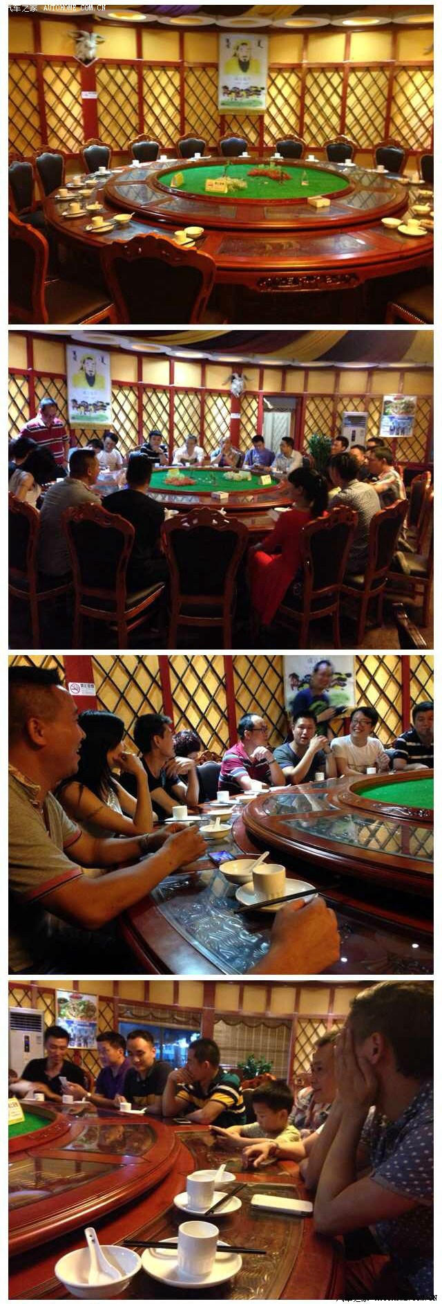 2014.4.19日下午17点,聚餐群会如期举行了,首先我要向大家道歉,因为本人也是第一次召集这么重型的活动,所有很多地方没有做的很好,以至于大家找地方的找了很久,想吃饭又等了很久,在这里我向大家郑重的道歉,对不起大家了,也希望大家多多理解和谅解!以后我会多加强这方面的组织能力学习,尽量给大家一个轻松自然的环境,也感谢大家的到来!本活动报名时有24名准车主,实到了20名准车主,连同3名家属,再次感谢这些车友百忙之中抽空来参加活动,以及对本群活动的大力支持!到场车友分别是(群主老郭,管理员九哥,管理员小田,管理员一龙,手表生产阿伟,狂人,风儿,乔瑞,可乐,明少,老四,小王,一片天,兴邦,虎子,瓜子,汤米,RIC,普罗,开心王)。特别感谢管理员小田给大家分别带来了小礼品,虽然是小东西,不值什么钱,但是小田兄弟能想到做到这点,就足够我群主多学学了,也特别感谢管理员九哥在外地出差都辛苦的赶回来,没有休息就赶来参加活动,还要特别感谢管理员一龙这段时期抽出很多时间与我商讨车友会的章程,帮忙通知各车友,十分感谢!总而言之一句话,本人心里满满都是感激,本人以后也会尽最大的能力把本群办得更好,为大家多谋福利!