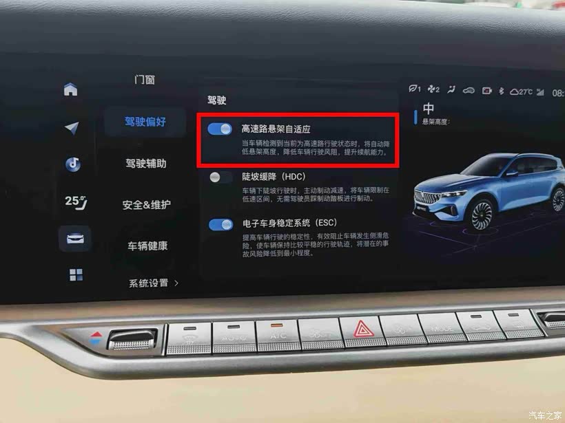 高速出行,岚图FREE还有空气悬架随速自动调节功能,车速高于115km/h时,底盘高度自动降低至133mm,大大增加了车身操控的稳定性和能耗的经济性,大赞!