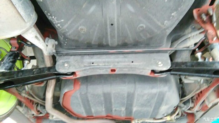 地盘上很多红红的漆是我喷的防锈底漆,平时车底看不到,难得顶起来了,就顺便把生锈的地方都处理了